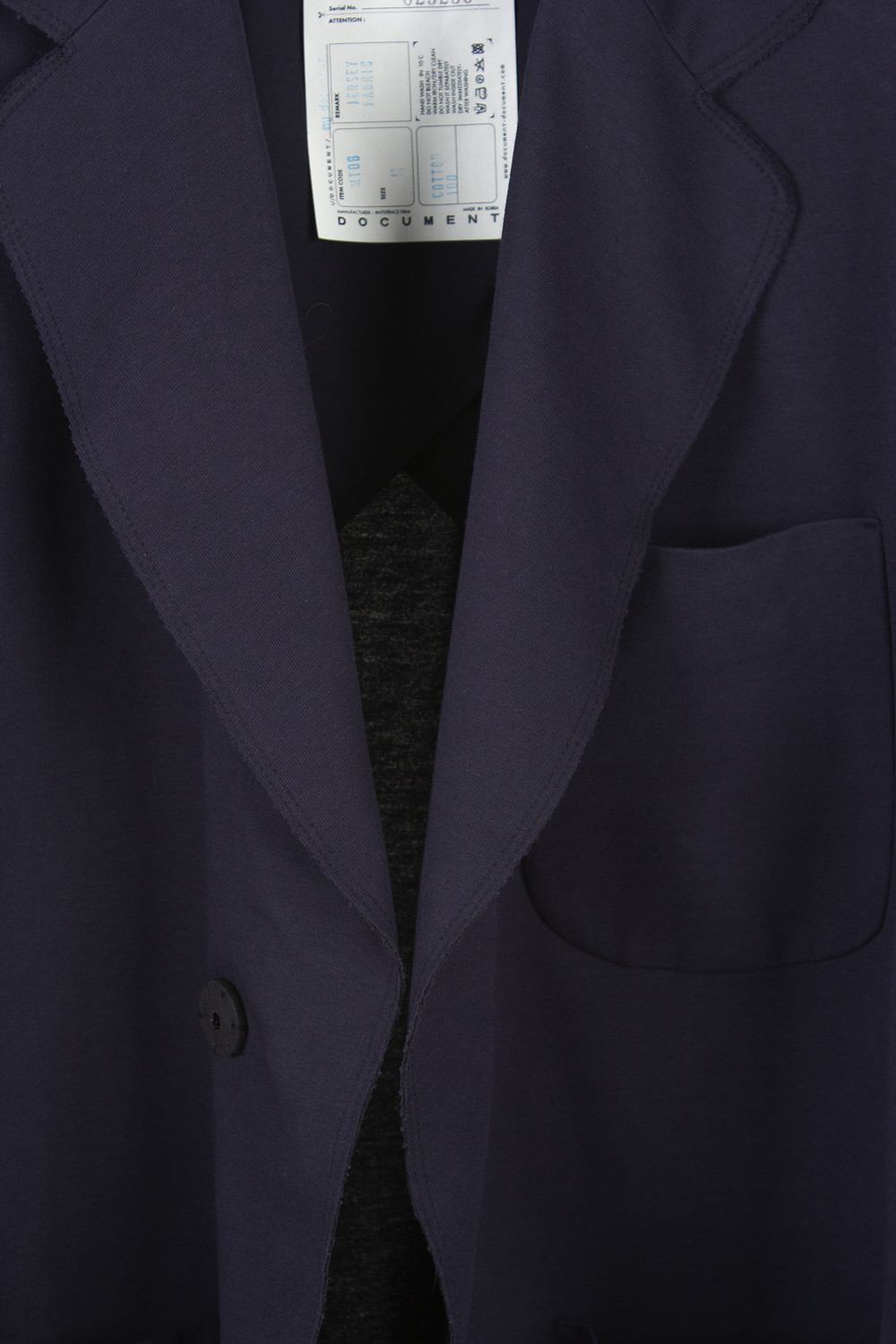 우븐 원단의 아닌 저지 원단으로 만들어진 유니크한 스타일이며, 끝에 단의 올이 풀리게하는 RAW CUTTING 방식으로 재단되어서, 고급스러움을 더해 줍니다.