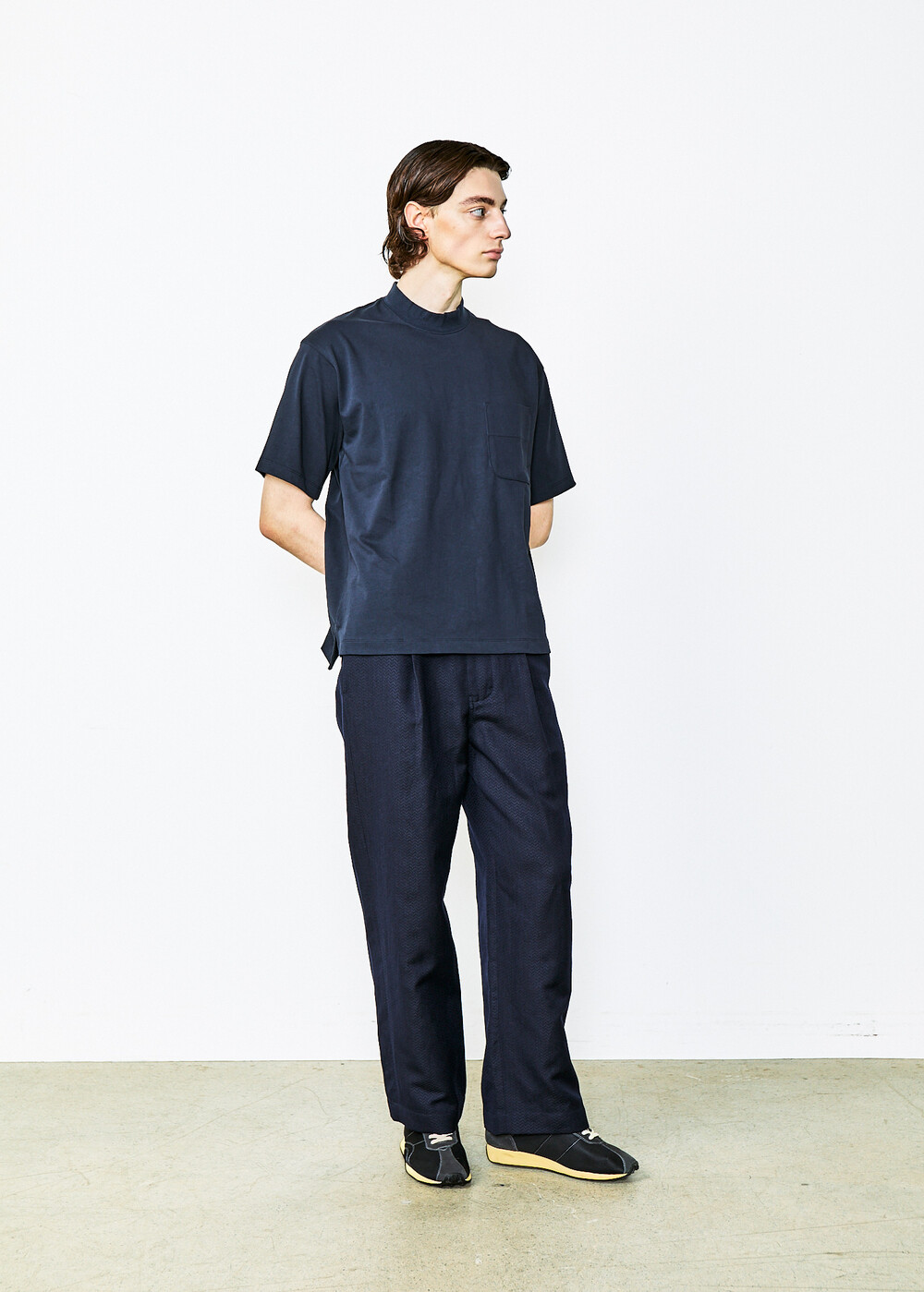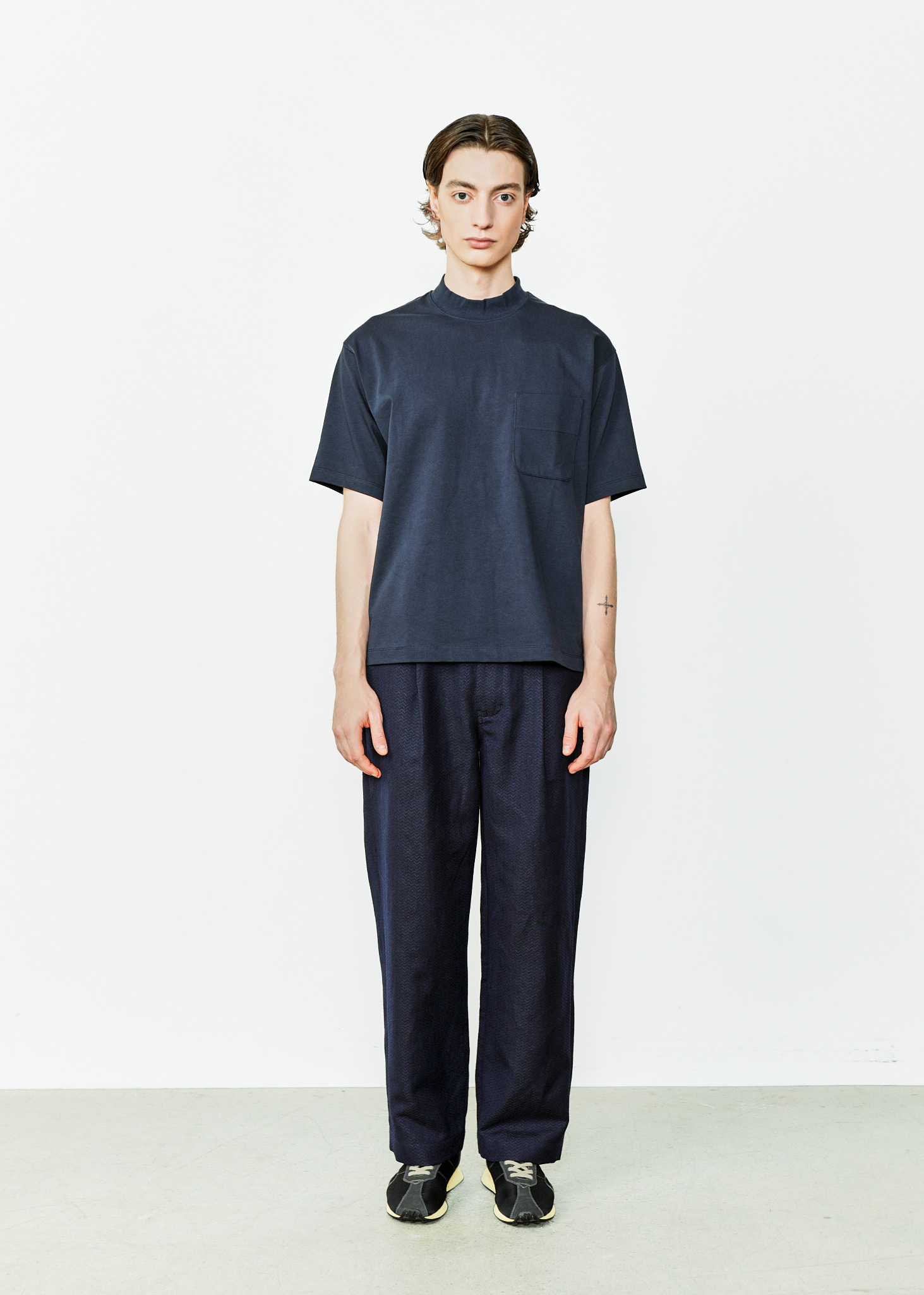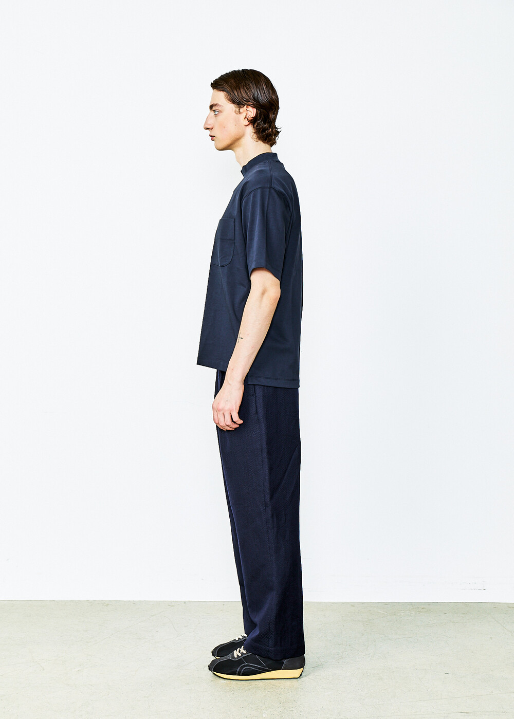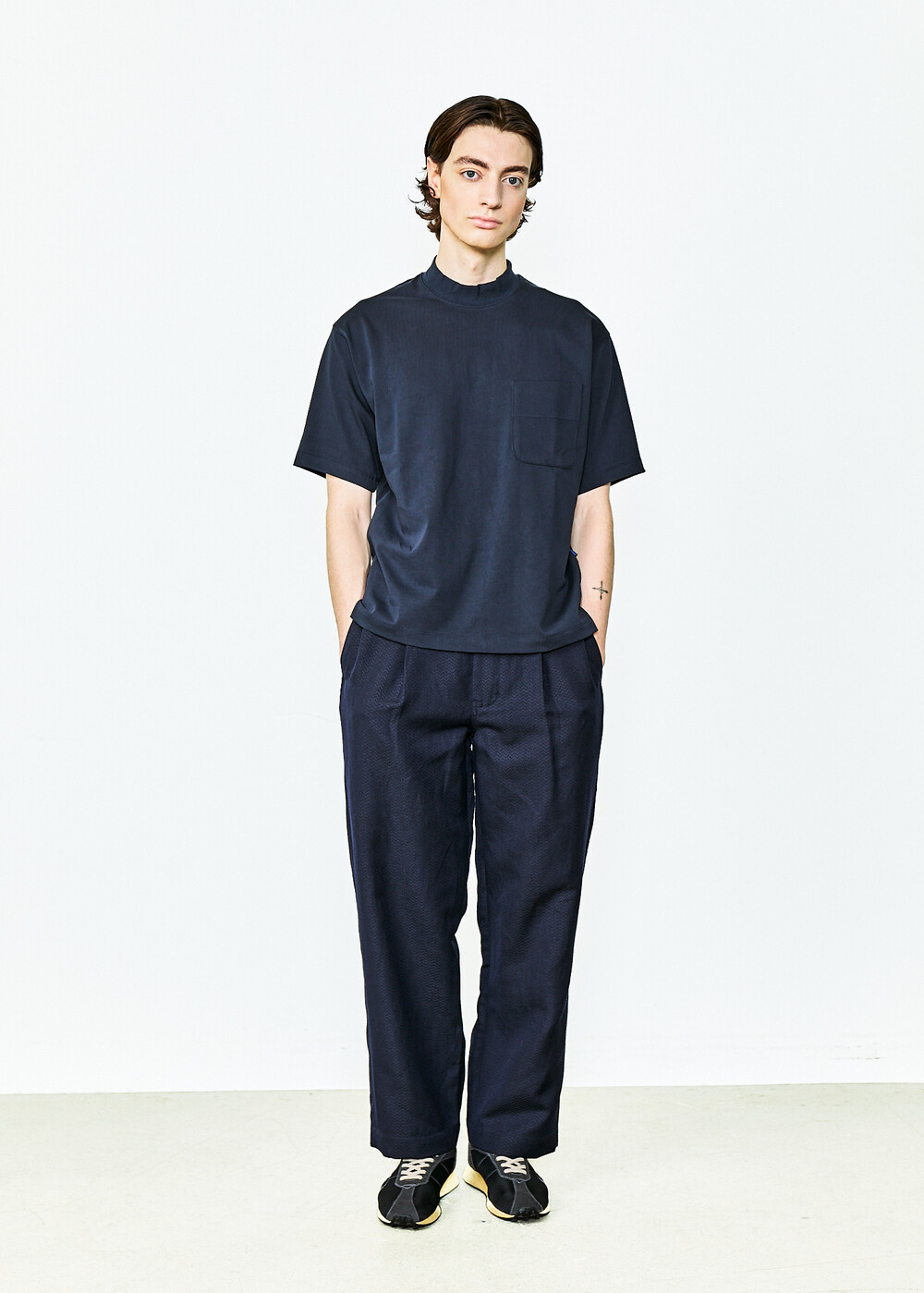 : WOOL LINEN WIDE WAIST BANDED TROUSERS_NAVY
