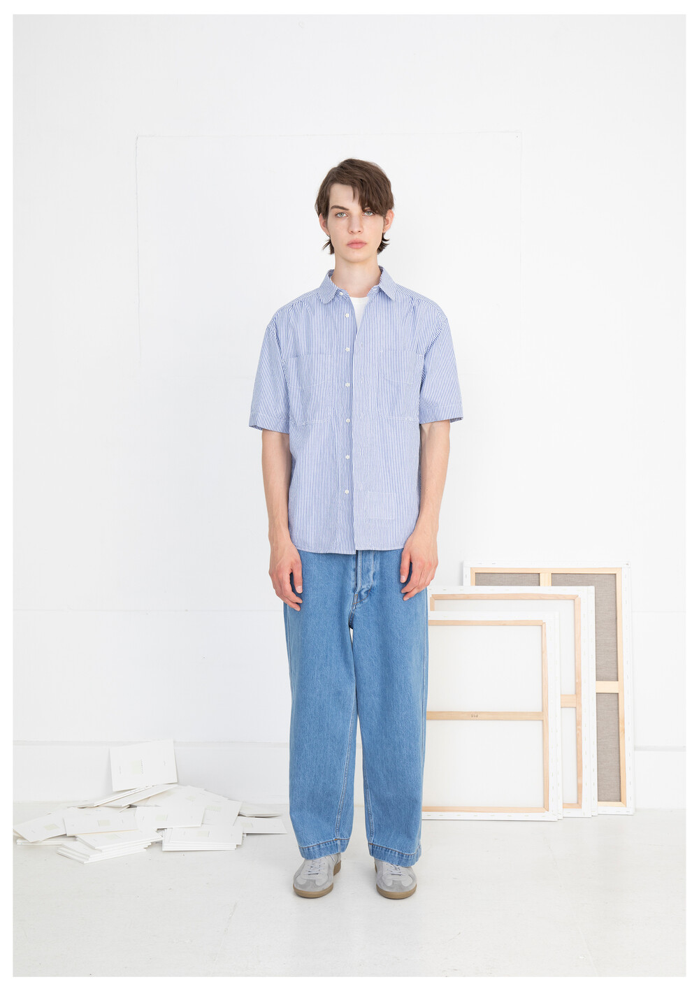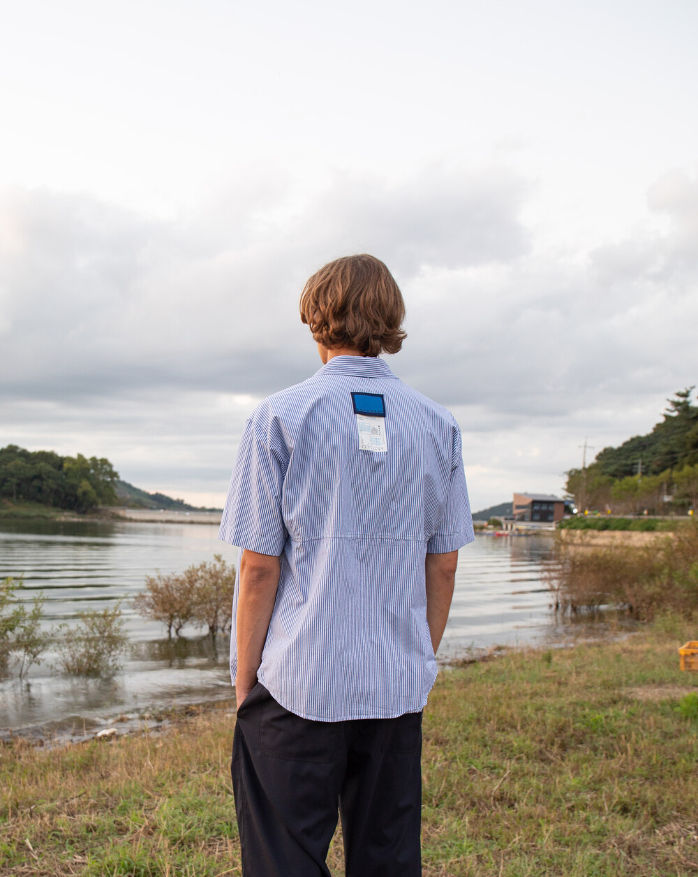 BACK LOGO STRIPED HALF SHIRT_BLUE