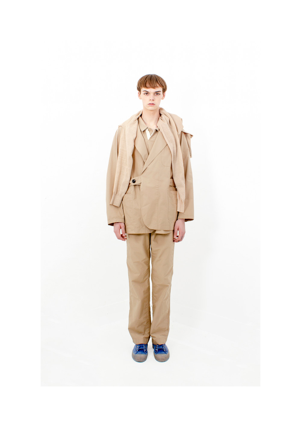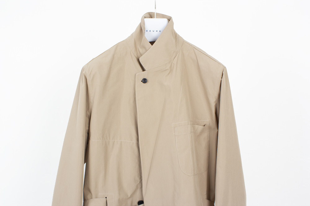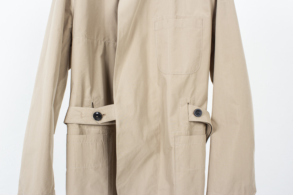 라펠의 첫 단추를 채워서 입을 수 있도록 있으며, 포켓에 펜을 꽂을 수 있는 가슴포켓을 포함하여 3개의 아웃포켓이 있으며, 안쪽에도 포켓이 하나 갖춰져 있습니다. 소매 안감없이 등판 안감만 있는 홑켭 쟈켓으로 소매를 걷어서 캐주얼 하게 입으시기 좋습니다. 허리쪽에 벨트는 자신의 허리에 맞게 단추가 탈착되면서 이동하면서 채울 수 있도록 되어있고, 채우지 않을 경우는 뒤쪽에 둘러서 고정시킬 수 있어 다양한 방법으로 연출이 가능합니다.