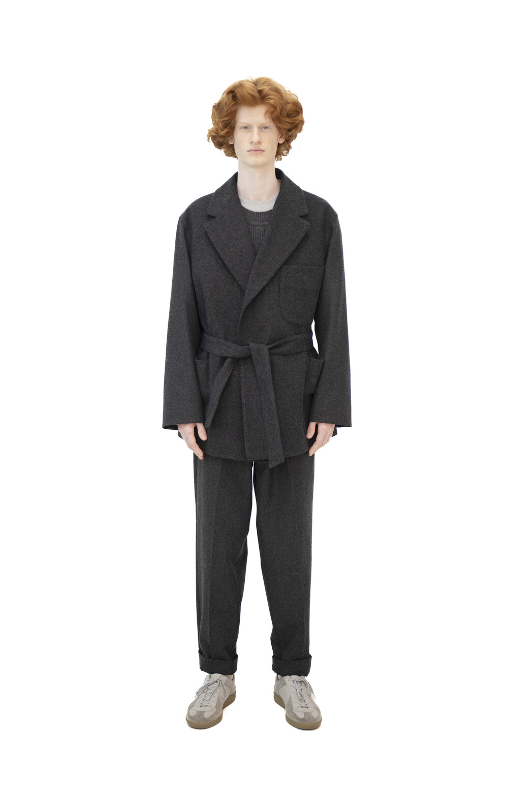 열여섯 번째 반복과 차이에서 선보이는 그레이 컬러 쟈켓은 요셉 보이스이 펠트 수트에서 출발한 쟈켓입니다.