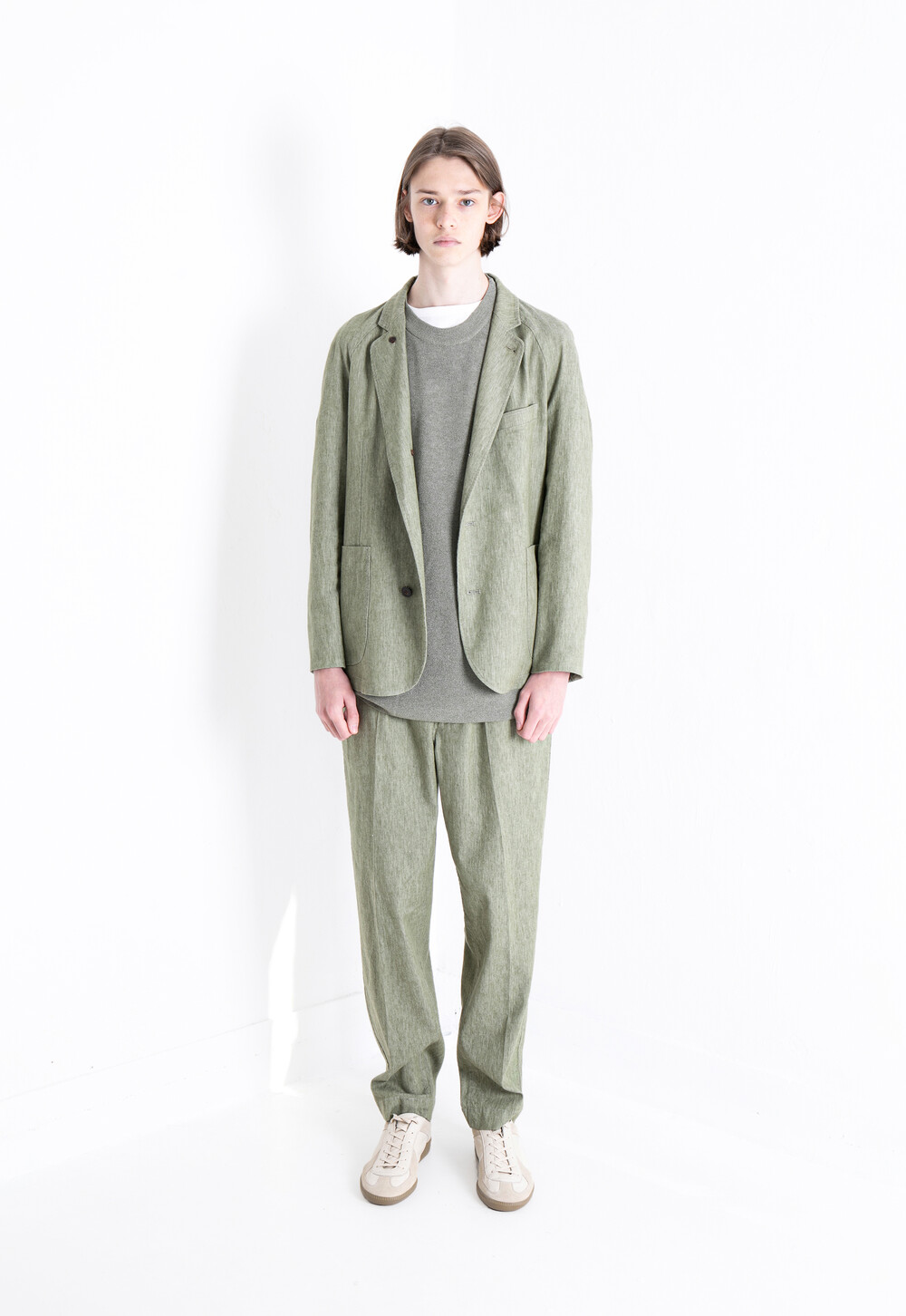 리넨 특유의 부드러움을 가지며, 깊게 들어온 여밈과 롤링 라펠로 되어있는 구조로 착장시 유려한 실루엣을 보여줍니다.