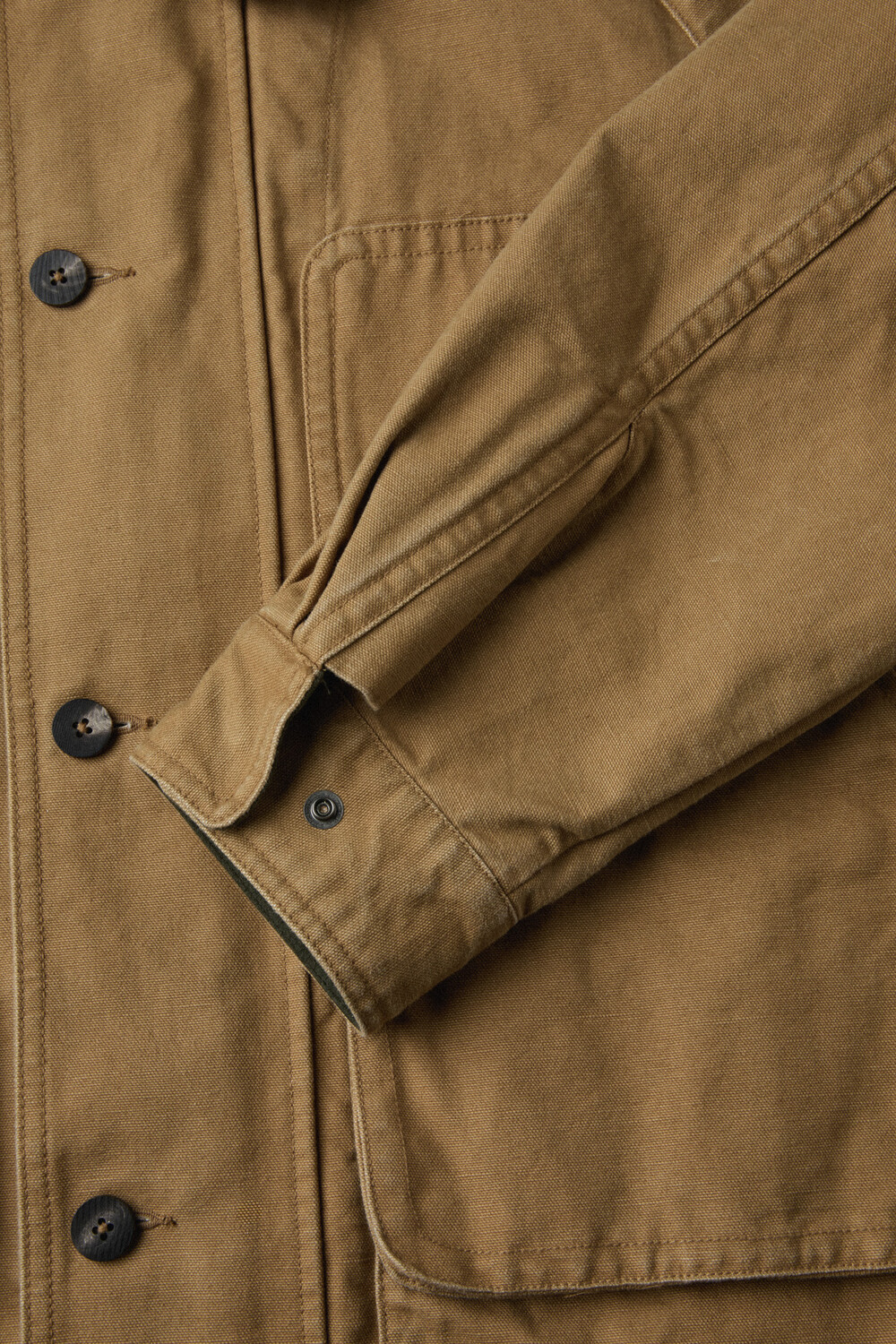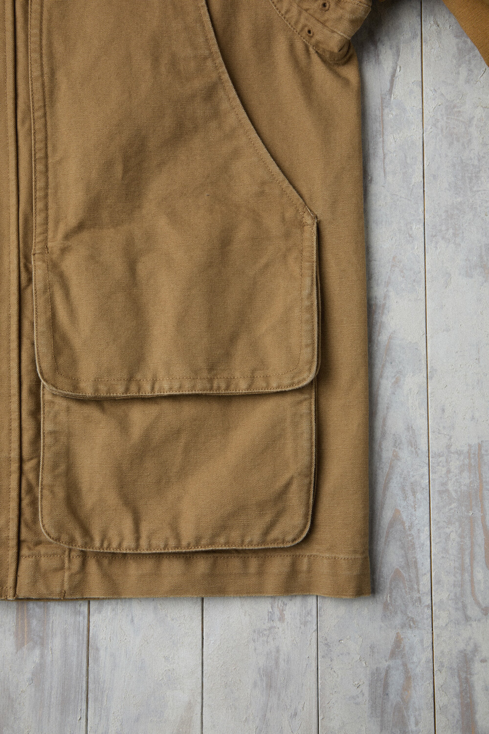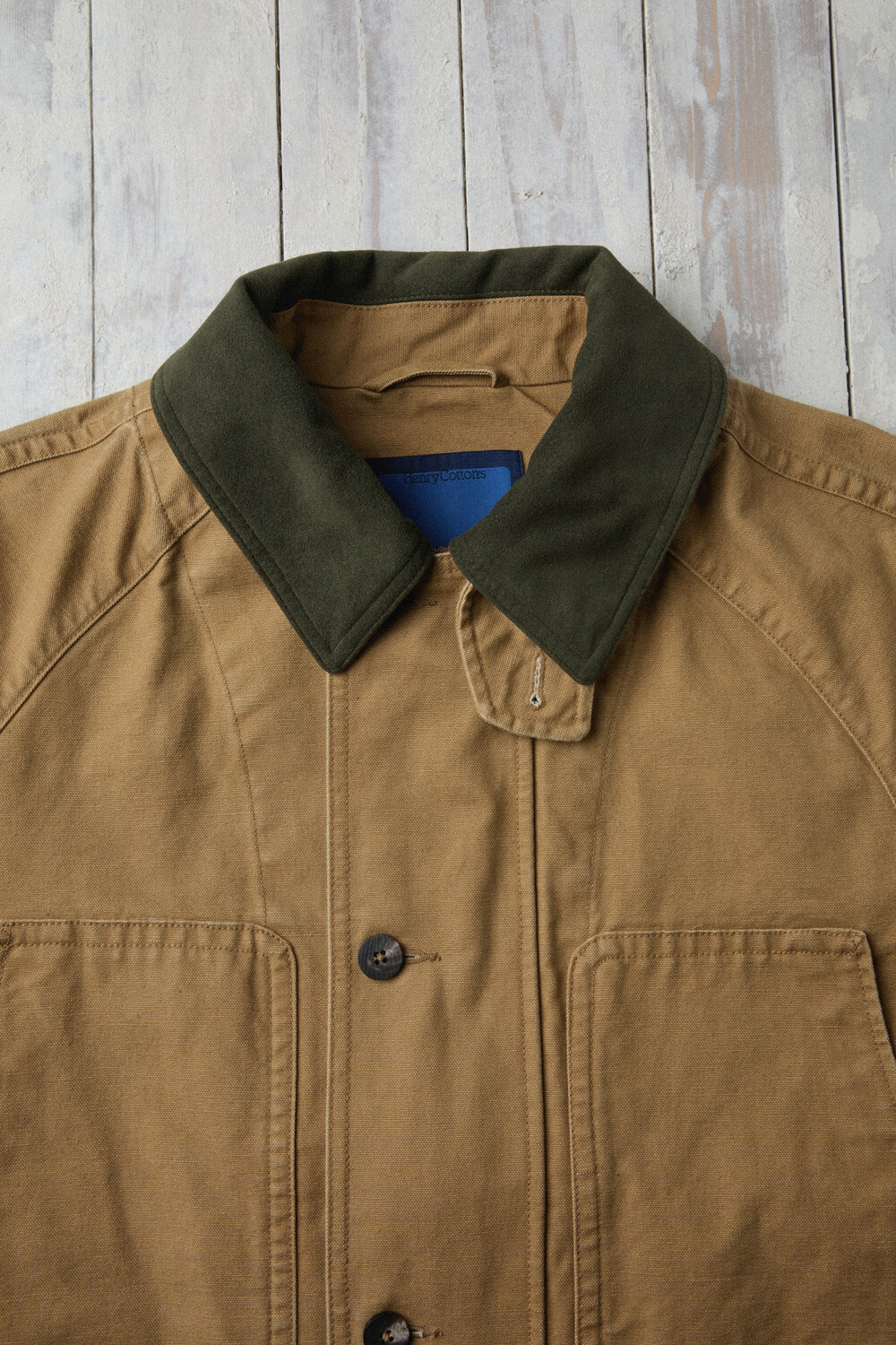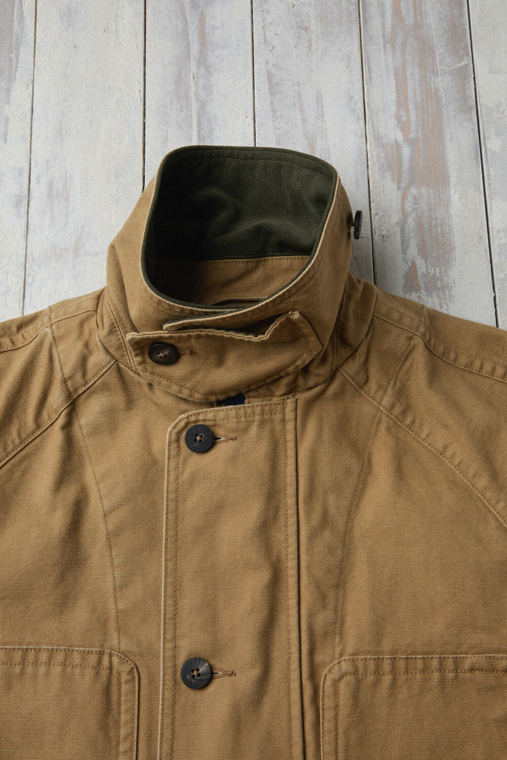 클래식 필드 자켓의 실루엣을 바탕으로, 일본 CHKUMA&CO.사의 **Vintage Duck Canvas 원단(42500DT)**을 사용해 제작한 필드 자켓입니다. 100% 코튼, 457g/sqm의 고중량 캔버스는 탄탄한 내구성과 함께 거칠지 않은 유연한 터치감을 갖추었고, 밀도 높은 조직감과 원단 특유의 형태감이 돋보입니다. 빈티지한 무드가 자연스럽게 어우러져 다양한 하의와 손쉽게 매치할 수 있습니다.