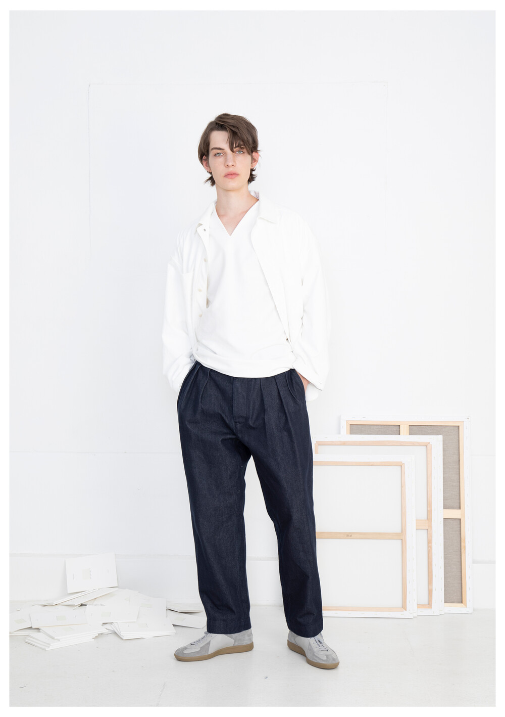 무게감 있는 일본산 데님 코튼으로 제작되었으며, 중량감이 느껴짐과 동시에 견고함이 실루엣으로 드러납니다.