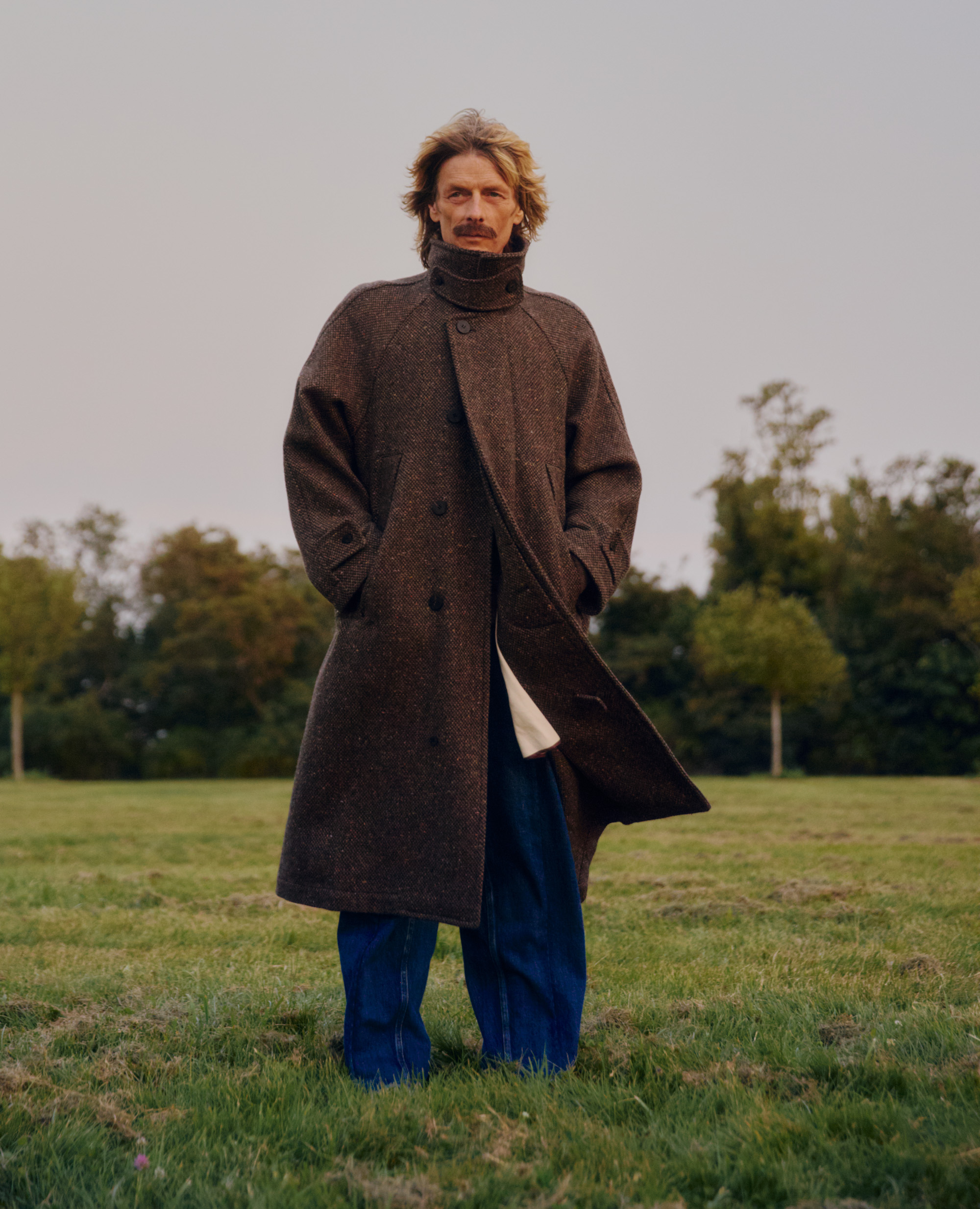Crafted from authentic Donegal Tweed,a fabric that takes its name and character from the Donegal region in Northern Ireland,the coat is woven in collaboration with MOLLY & SONS,a mill with a long-standing heritage in the region,using an original fabric exclusively developed for DOCUMENT.