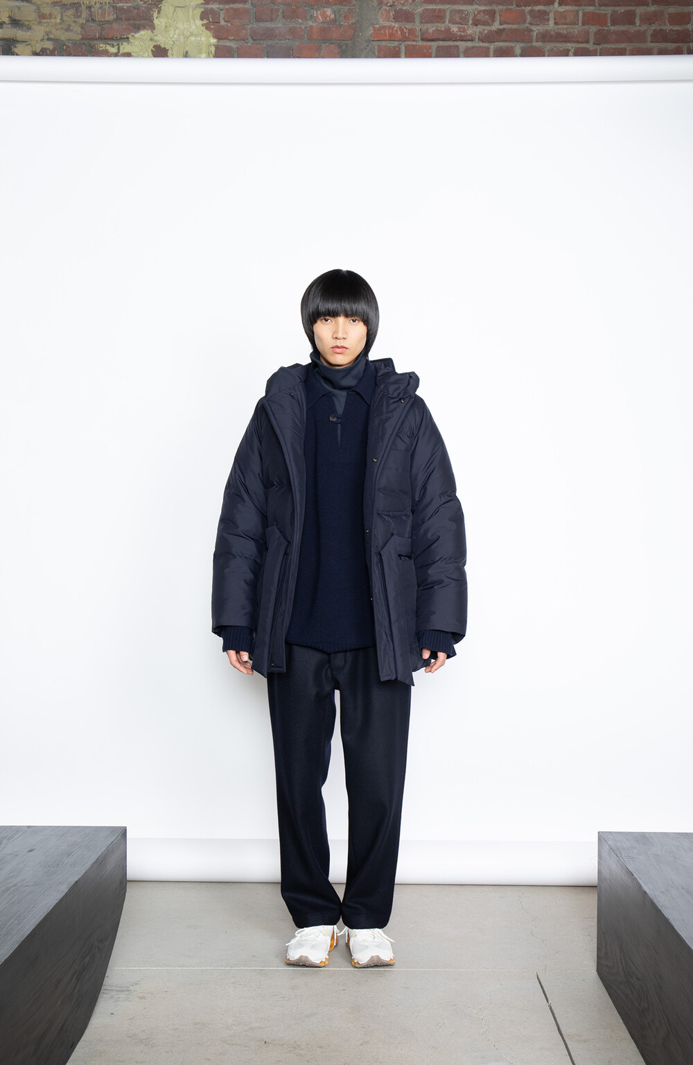 후드를 여미는 스냅은 기호에 따라 앞뒤로 여며 개구부를 최소화하거나 양옆으로 여며 여유롭게 후드를 착용하실 수 있습니다.