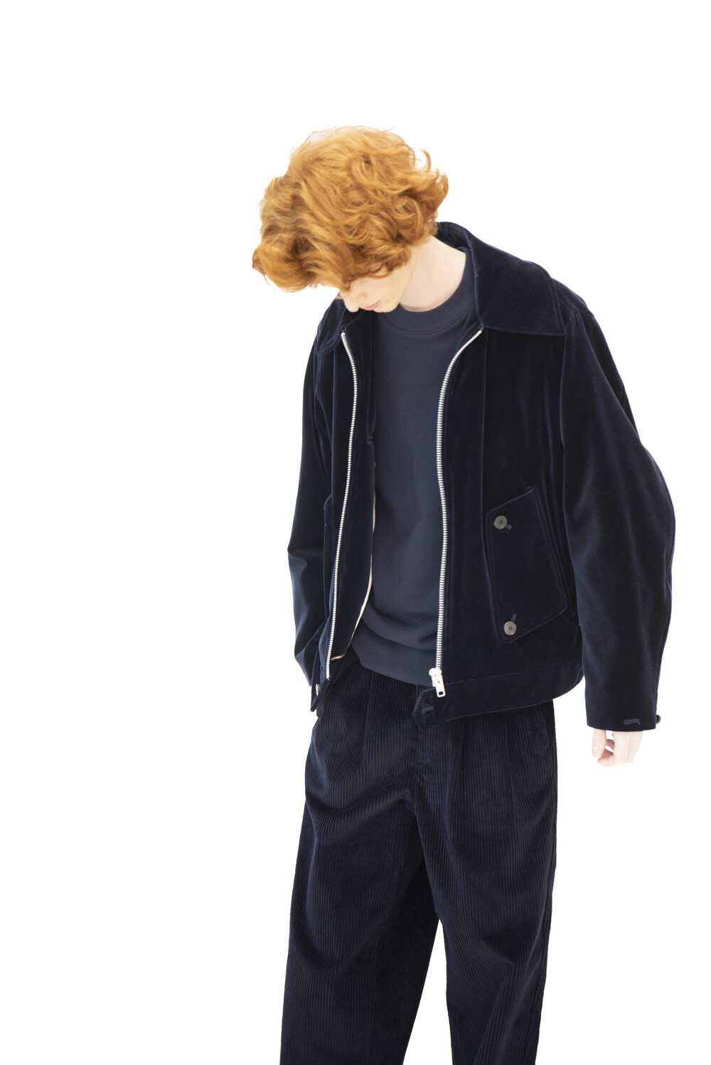 ENGLISH VELVET HARRINGTON JACKET_NAVY