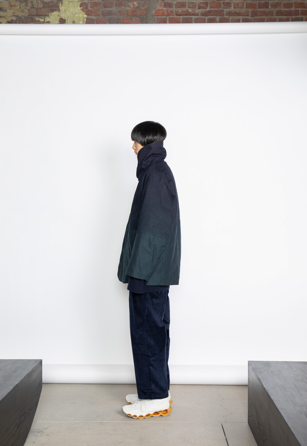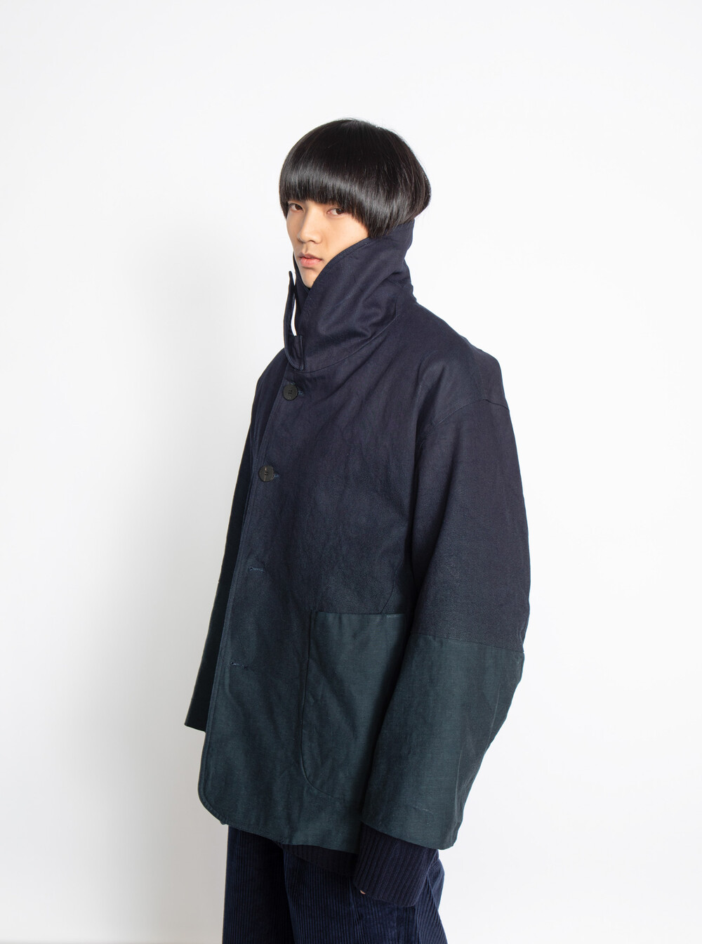 상단으로 올라갈수록 색감이 진해지는 그라데이션 기법으로 가공된 데님 원단으로 색감이 매력적인 코트입니다.