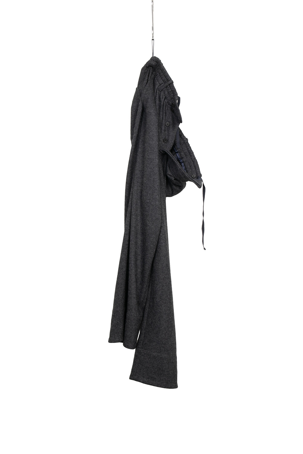20번째 반복과 차이에서 새롭게 선보이는 디자인으로 와이드한 핏과 함께 천연 소뿔 단추로 마감하였습니다. 허리는 밴딩처리 하여 입고 벗기 용이하게 제작되었으며, 끈으로 한번 더 조절할 수 있어 허리사이즈의 부담을 줄였습니다.