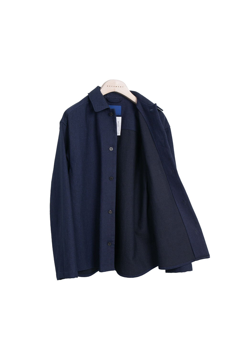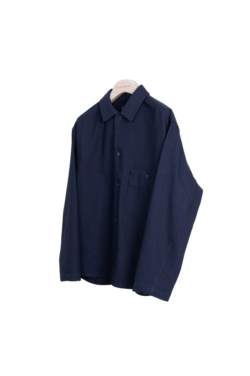 도큐먼트를 연상할 수 있는 곡선 모양의 가슴 주머니가 있고, 셔츠이지만 소매 활동성을 고려하여 자켓에 주로 사용하는 두 장 소매로 재단되었습니다.