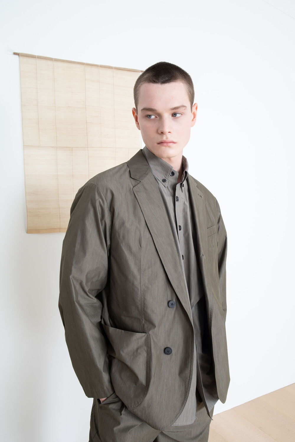 도큐먼트의 라글란 쟈켓이 그대로의 실루엣을 따르며, 셋인 쟈켓으로 색다른 느낌의 원단으로 출시되었습니다.