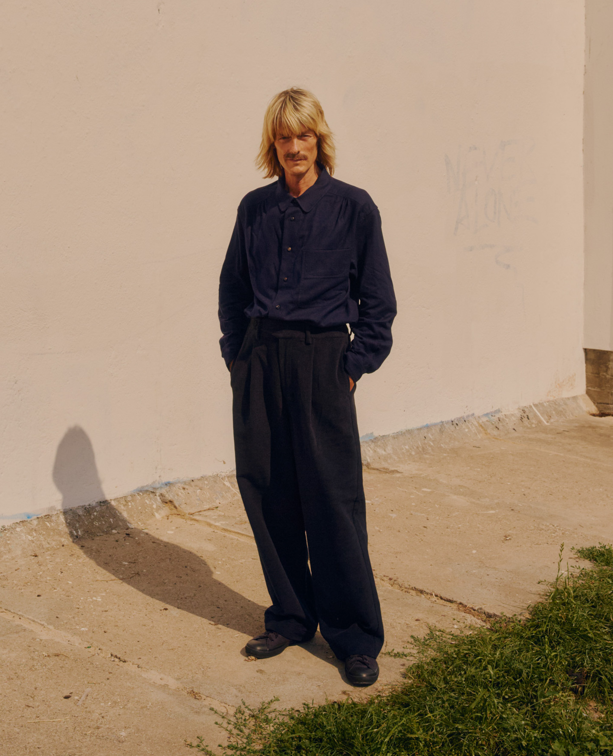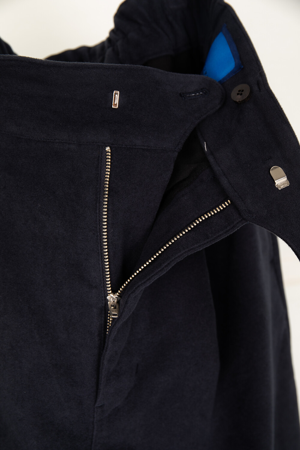 BRITISH MOLESKIN CLOTH (면 100%) 으로 제작된 팬츠입니다.영국 전통의 몰스킨 원단은 치밀하게 직조된 면사 위에부드러운 기모 처리를 더해 견고하면서도 따뜻한 촉감을 지닌 것이 특징입니다.표면은 스웨이드처럼 부드럽지만 일반 코튼보다 훨씬 높은 밀도로 짜여바람을 차단하고 형태를 안정적으로 유지합니다.