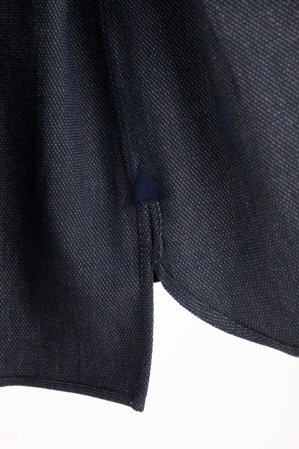 체스트 포켓은 대칭을 이루지 않고 비스듬한 곡선을 이루며, 부드럽게 굴려진 스티치라인이 더해져 옷의 뉘앙스를 이야기합니다.