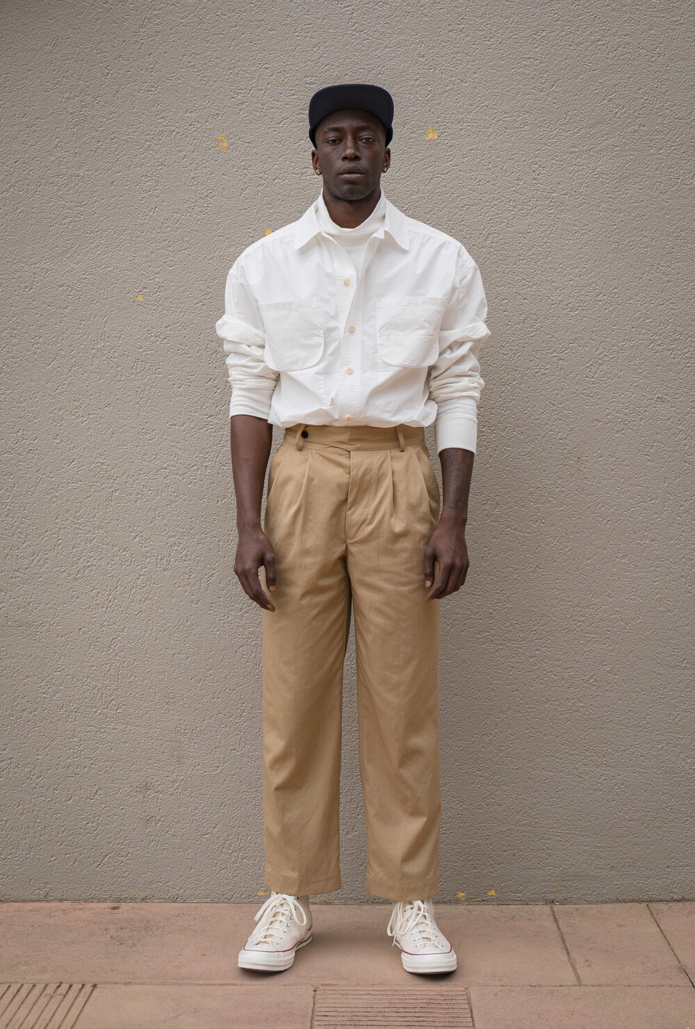 NYLON CHINO TUCKED TROUSERS