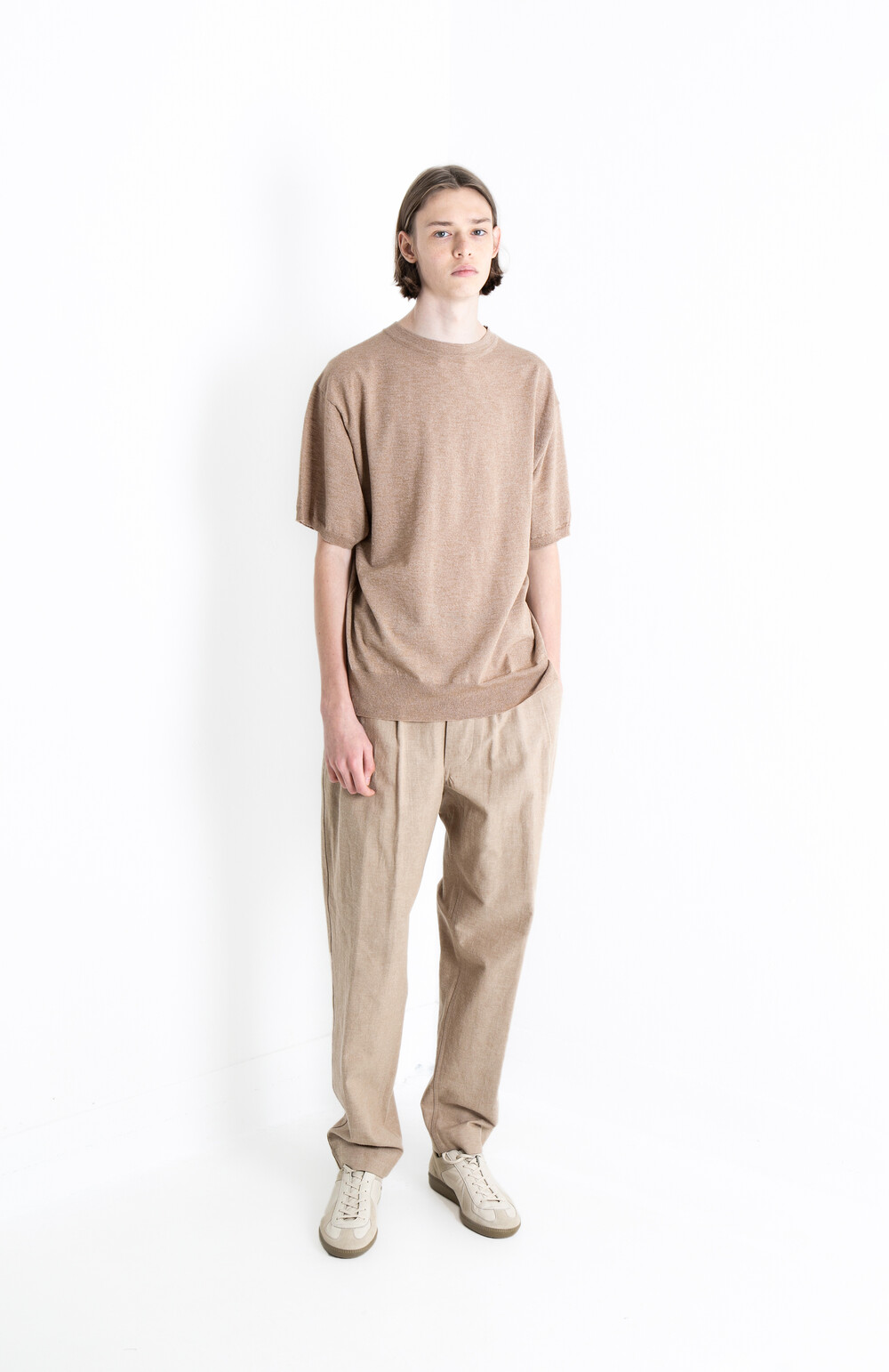 얇은 게이지로 느리게 짜여져서 가벼우면서 부드럽고 릴렉스한 핏으로 드러납니다.