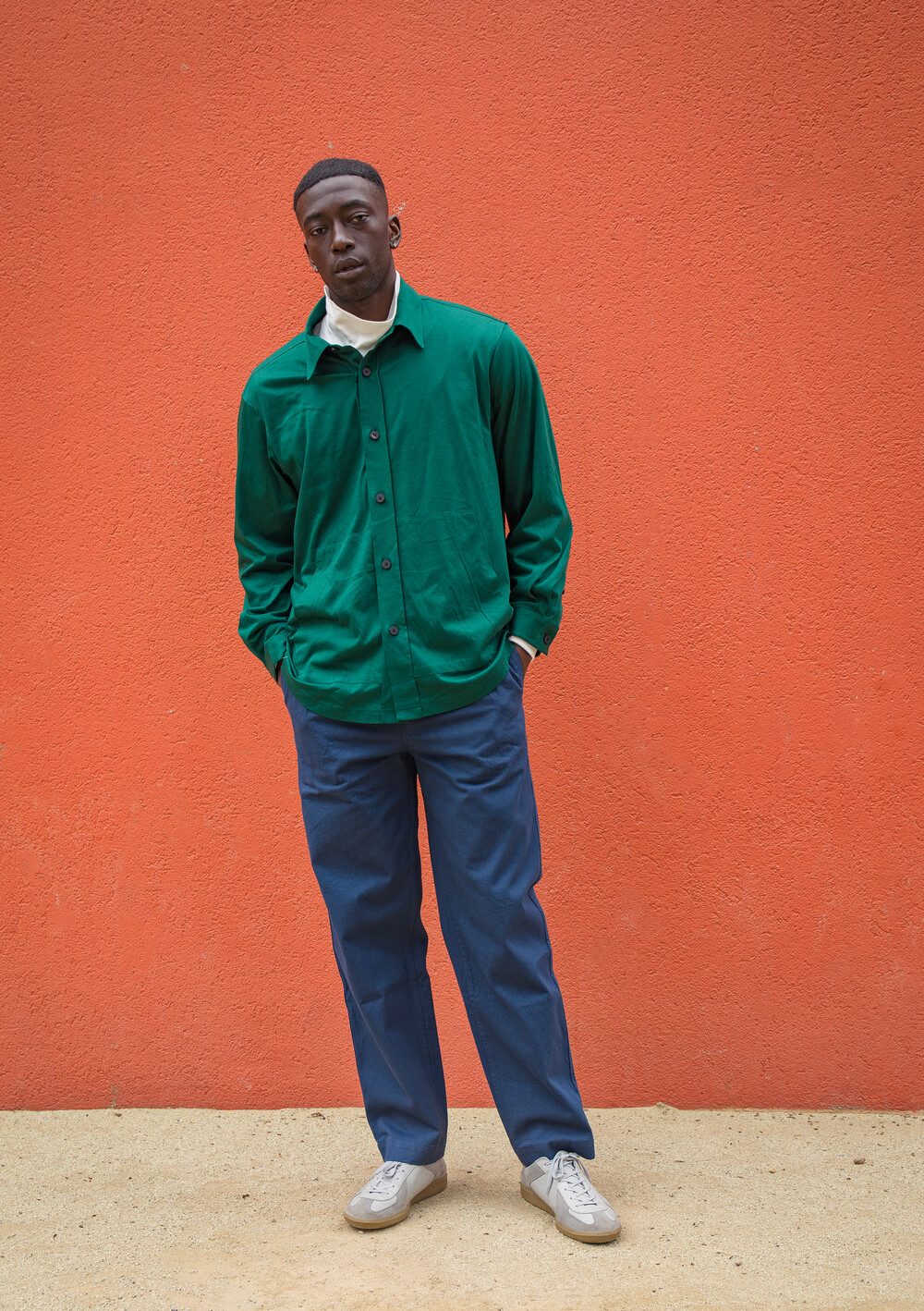 도큐먼트 셔츠 실루엣의 특징인 드롭되는 어깨와 등품 안쪽의 숨어있는 주름으로 활동량을 유지해 줍니다.