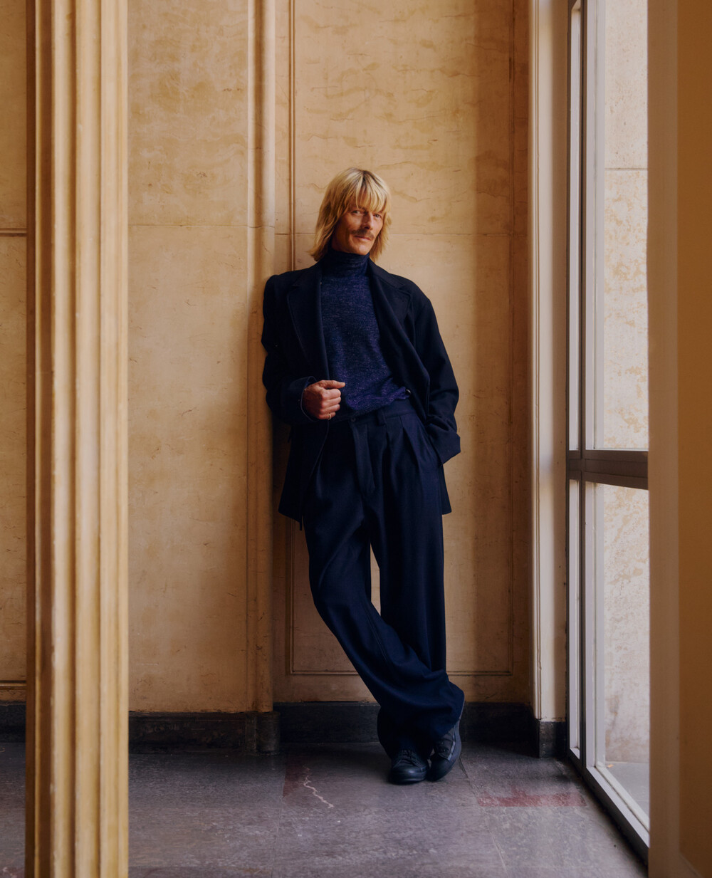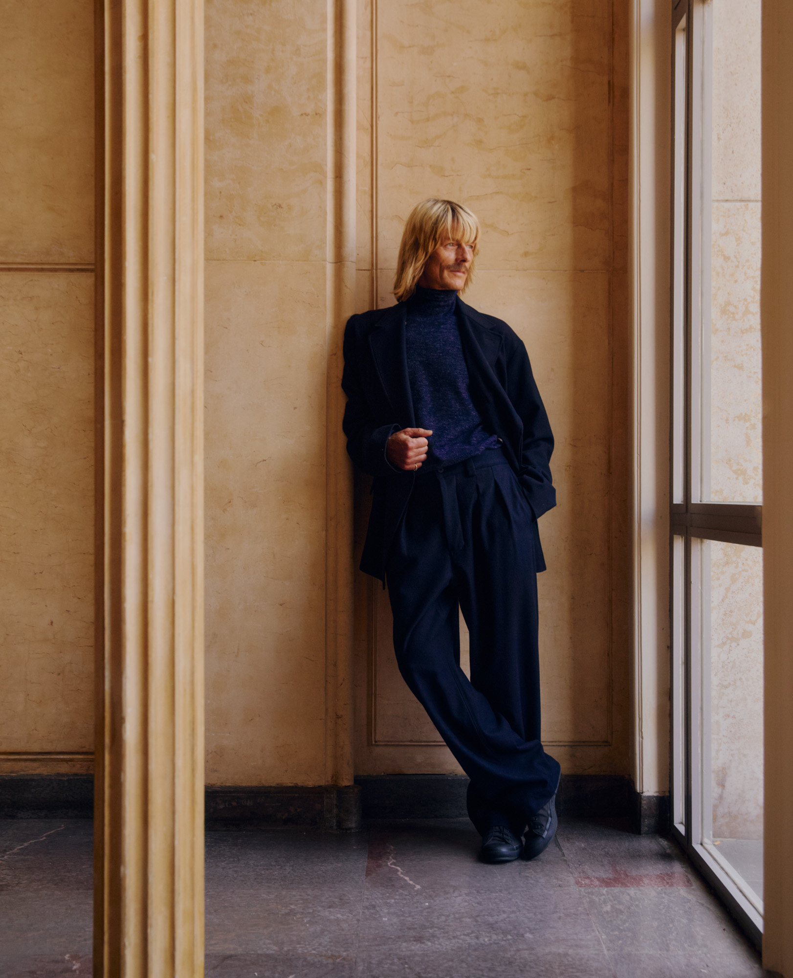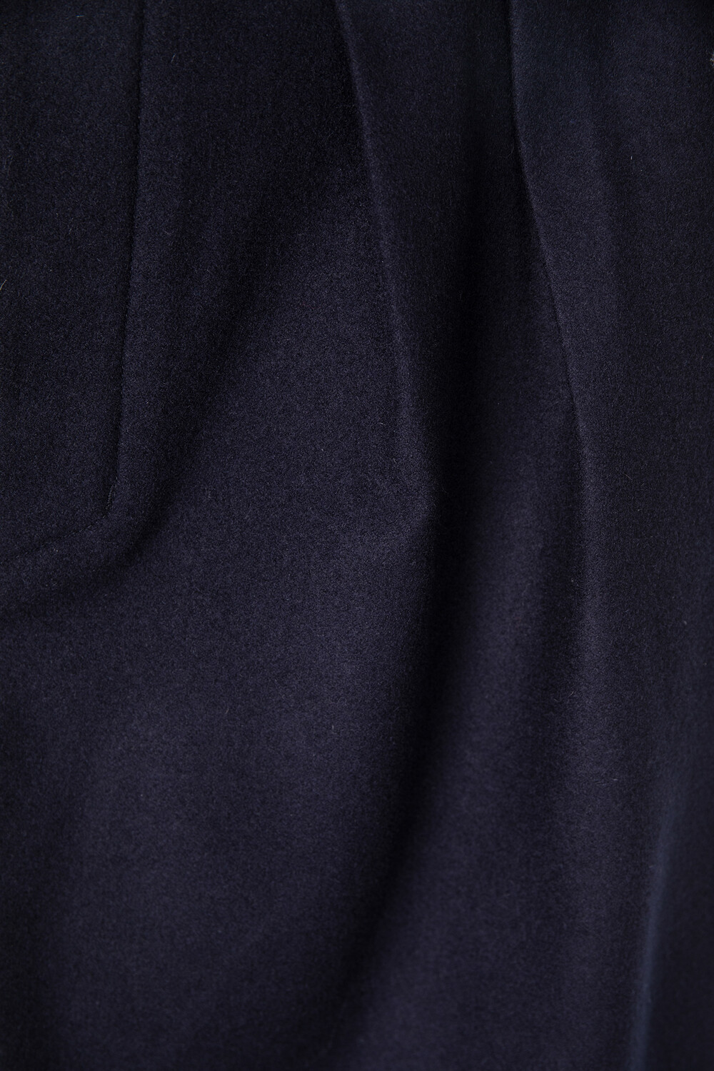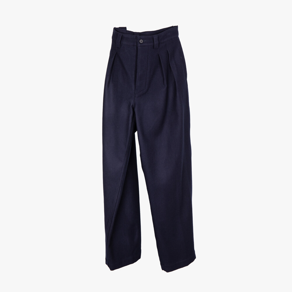 고밀도의 SOFT MELTON FABRIC (울 100%) 으로 제작된 팬츠입니다.표면이 부드럽고 단단하며, 높은 밀도의 조직감이 형태를 안정적으로 유지시켜 줍니다.멜톤 특유의 깊이 있는 질감과 은은한 광택이 조화를 이루며,겨울 시즌에 적합한 따뜻함과 구조적인 실루엣을 제공합니다.