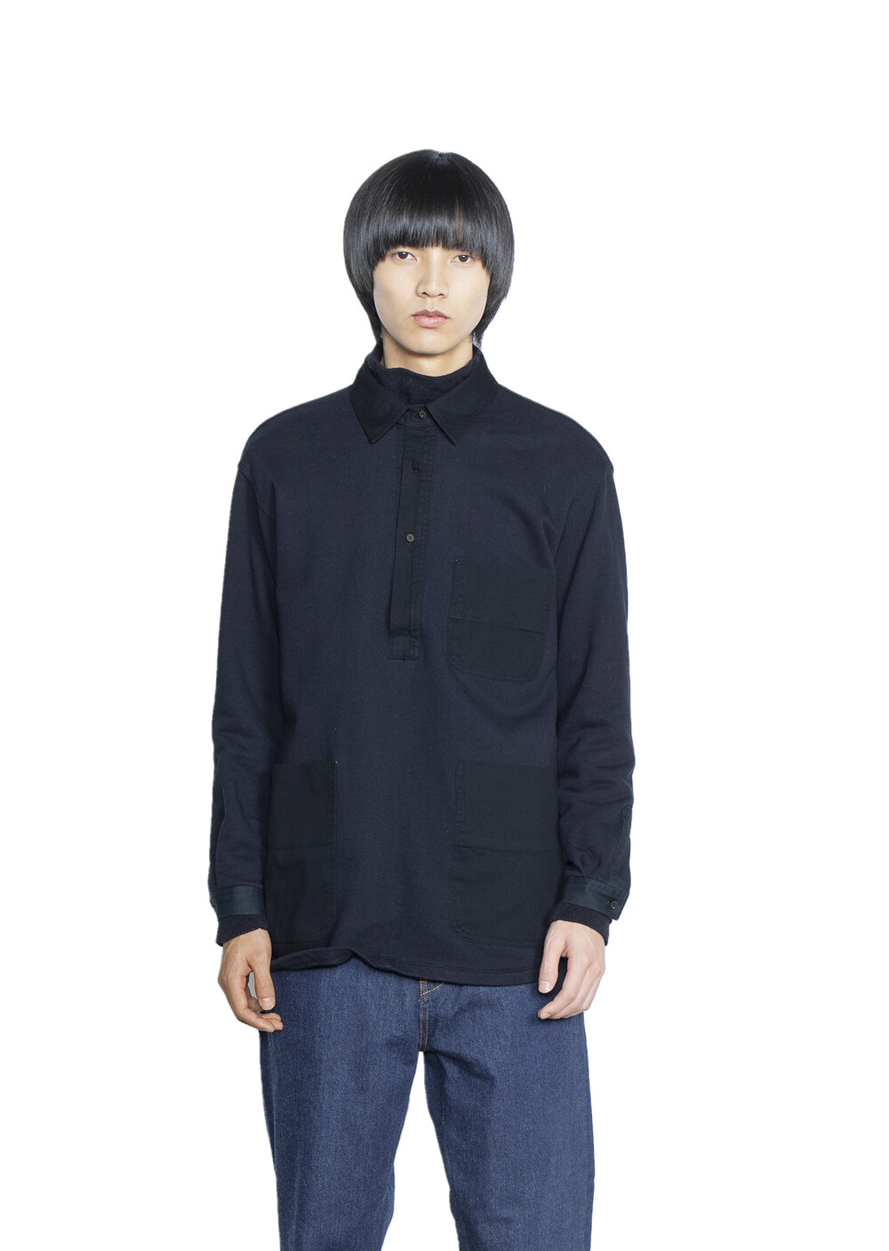 배색으로 들어간 면 안감과 저지 원단의 조화가 매력적인 셔츠입니다. 전면 3개의 주머니 끝 모양을 둥글게 하여 도큐먼트의 상징성을 나타내고 있습니다.
