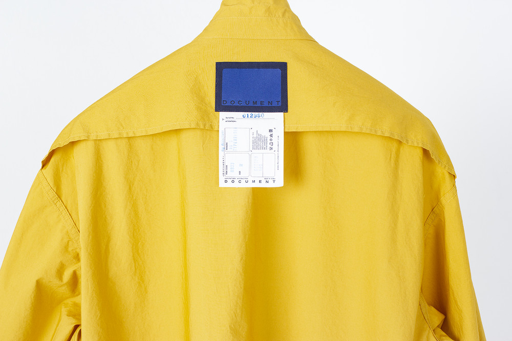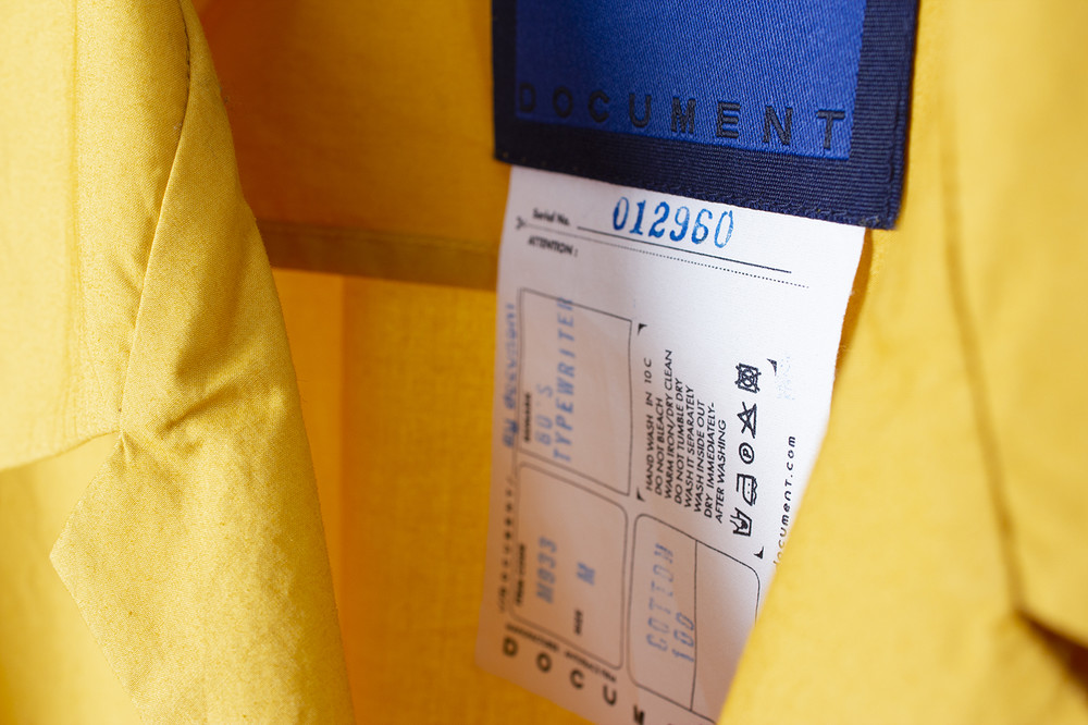 원단에 타이프를 쳐도 된다는 의미로 바스락거리는 TYPEWRITER 패브릭으로 만들어진 셔츠입니다.