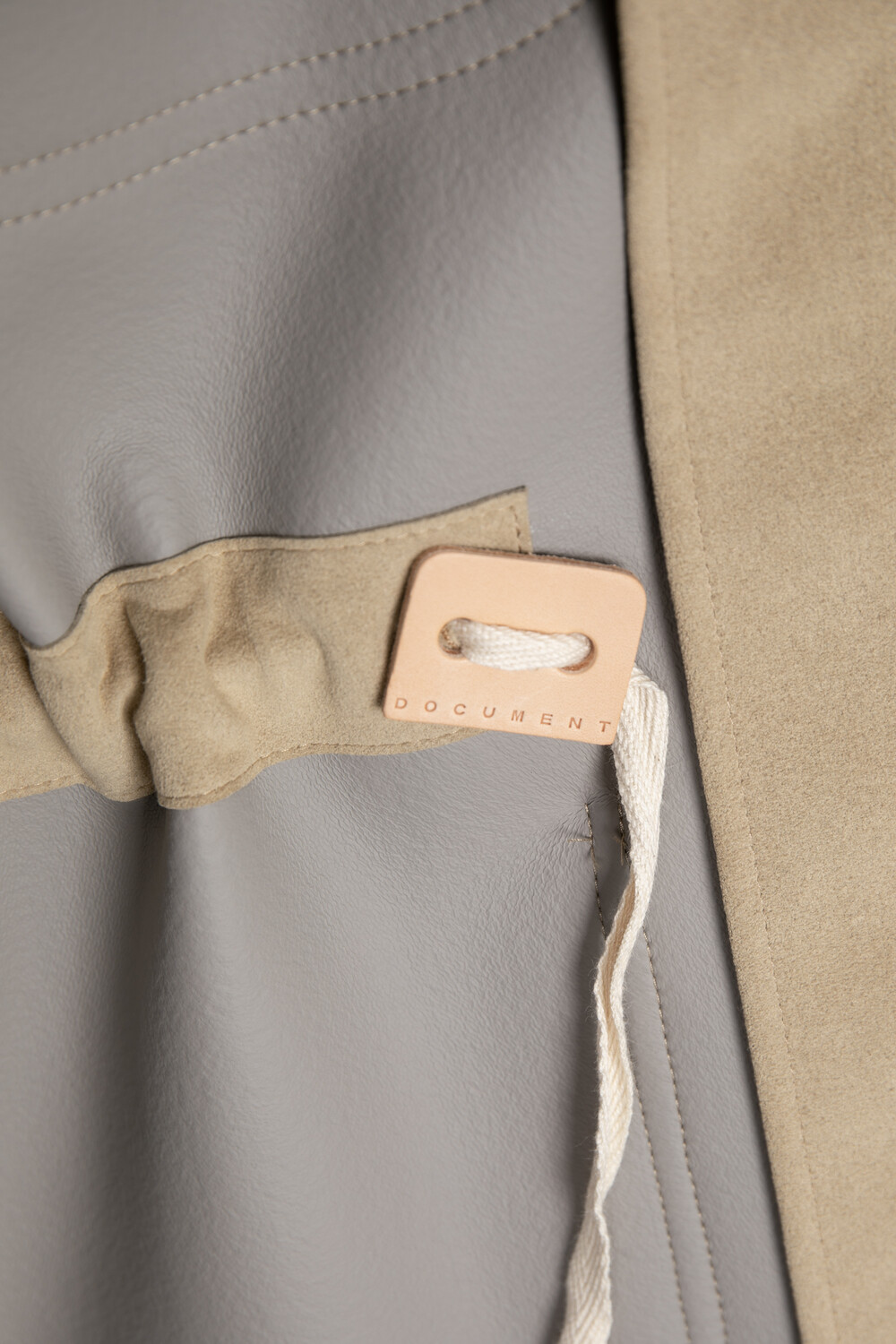 허리는 가죽스토퍼를 이용하여 스트링으로 조일 수 있는 전통적인 디테일을 따릅니다.