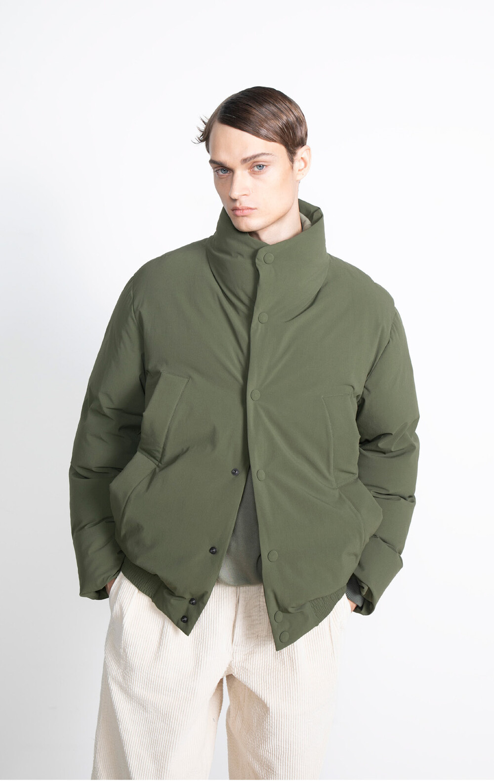 바시티 자켓 모티브로 도큐먼트만의 시그너쳐 포켓 디테일을 응용하여 제작된 다운 자켓 입니다.
