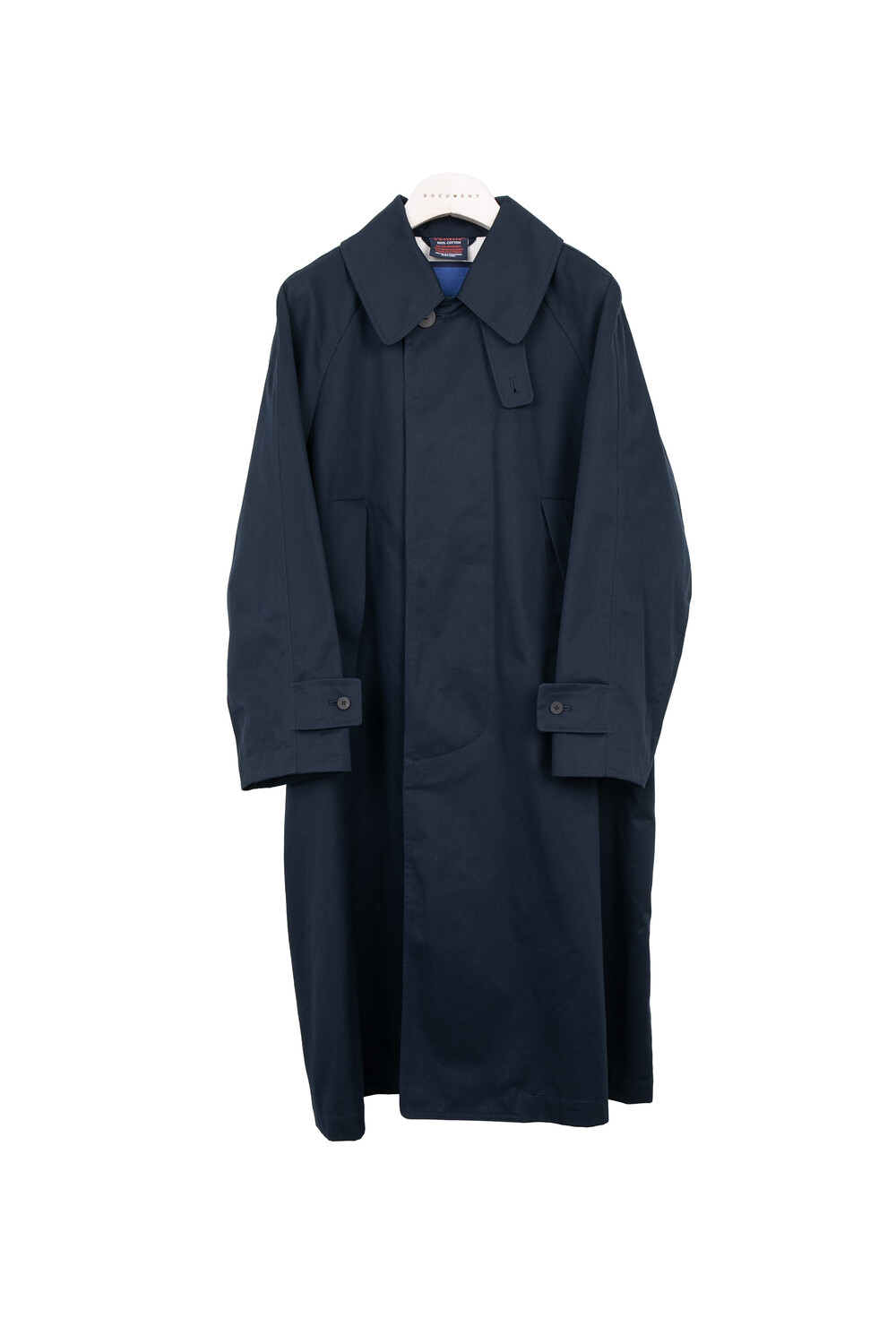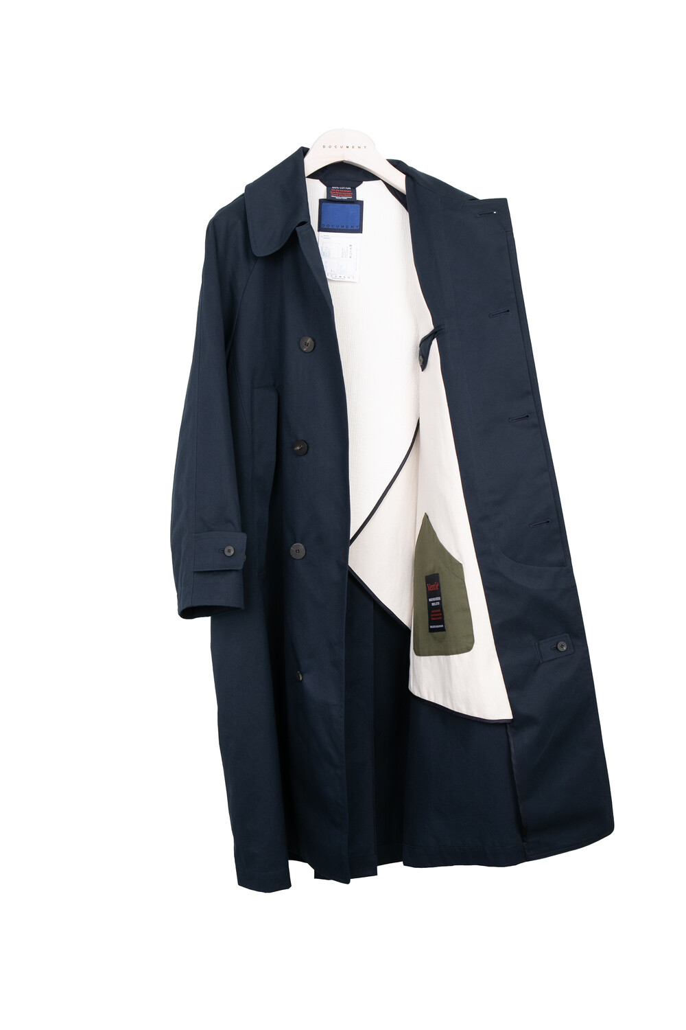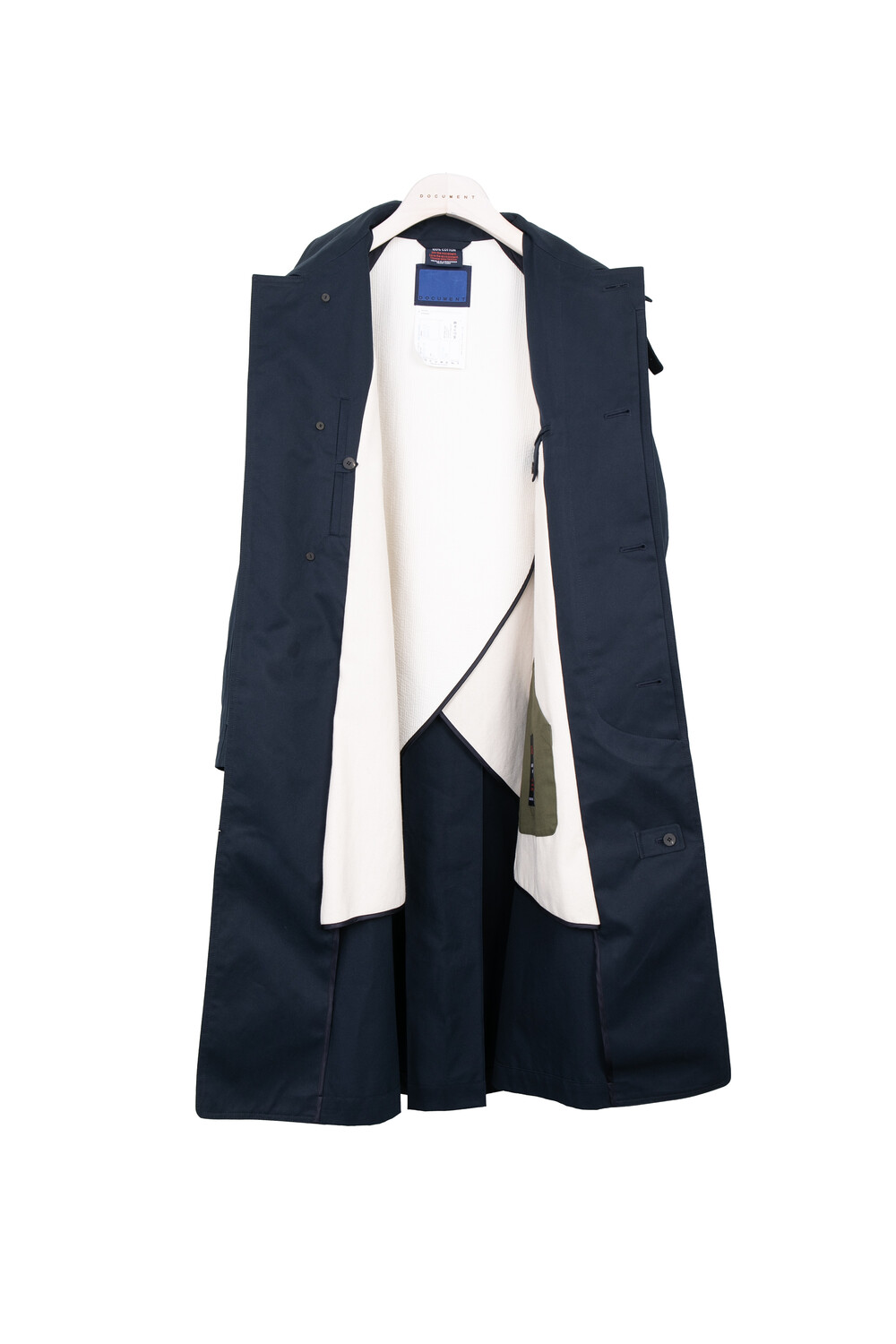 고밀도의 직물로 짜여진 벤타일 원단으로 제작되어 통기성이 우수할 뿐만 아니라 방수기능이 우수하여 레인코트로서의 면모도 보여줍니다. 넓고 높은 카라로 깃을 세워 비죠를 채움으로써 비,바람을 막을 수 있게 제작되었습니다. 오버사이즈 한 실루엣이 매력적인 코트로 밑단으로 갈수록 넓어지는 A라인의 실루엣을 뒷판의 안쪽으로 접히는 인버티드 플리츠를 통해 아름다운 밸런스를 보여줍니다. 안감은 누빔지와 10’S 면 안감을 사용하여 도큐먼트 시그니처 디자인으로 표현하였습니다. 100사이즈 기준 M사이즈를 권장드립니다.