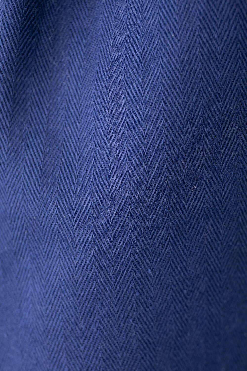 일본산 HERRINGBONE TWILL 원단으로 실제 밀리터리에서 사용하던 원단을 복각하여 견고하면서도 빈티지한 외관이 매력적이며, 프렌치 밀리터리의 블루컬러를 느낄 수 있습니다.