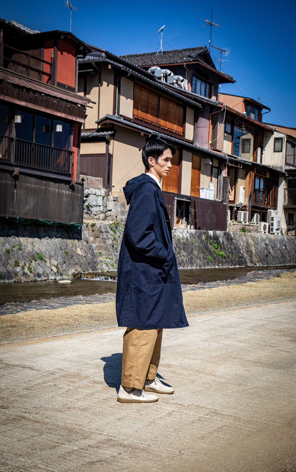 활동성과 기능성을 겸비한 23SS 시즌의 NAVY WATER PROOF HOODED COAT를 경험해 보세요.