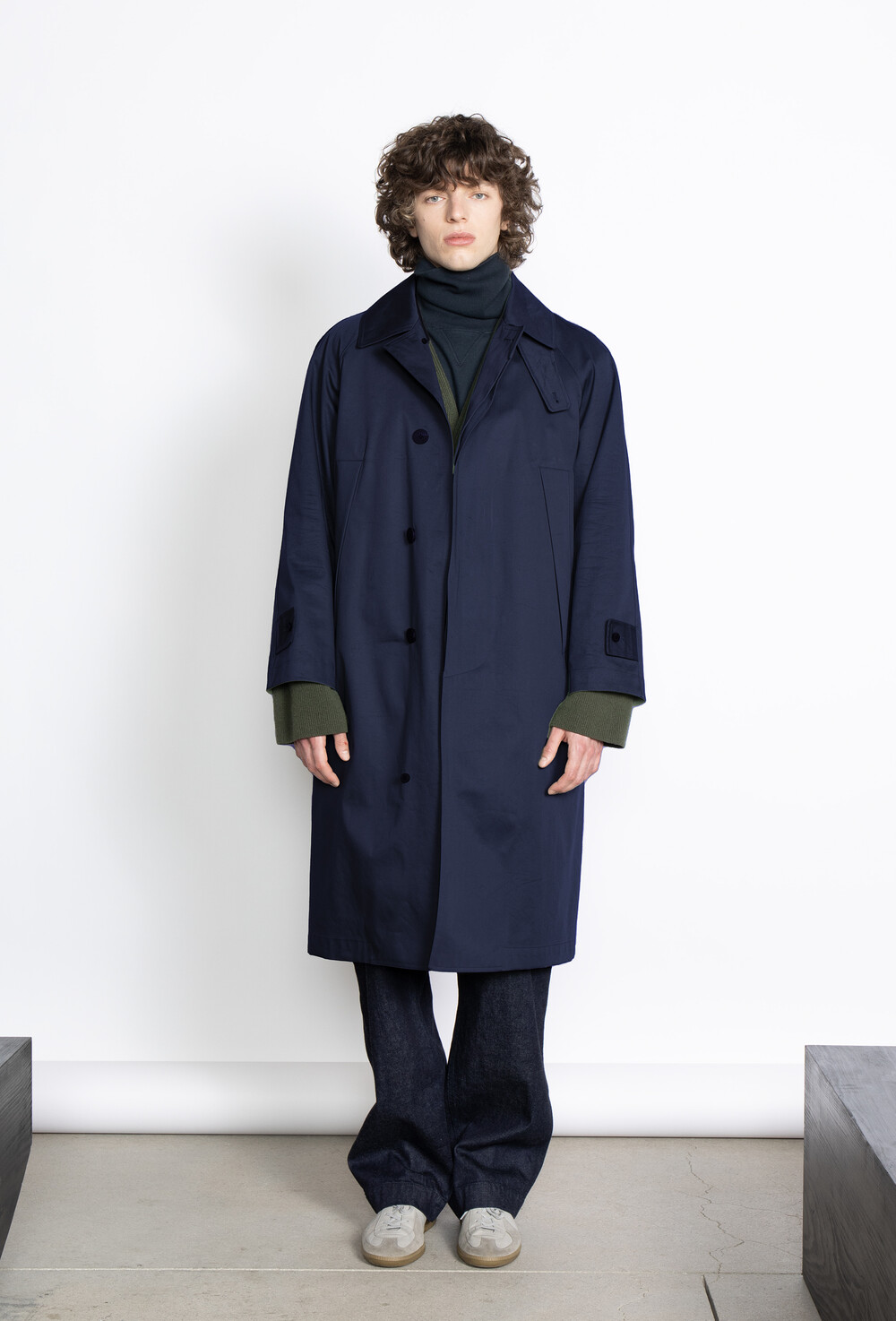 :WATERPROOF INVERTED PLEATS BALMACAAN COAT_NAVY