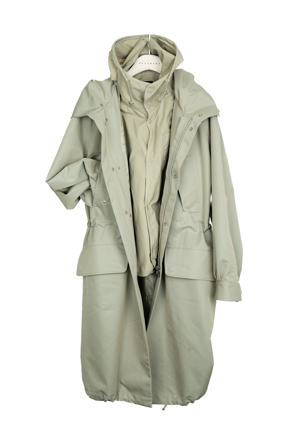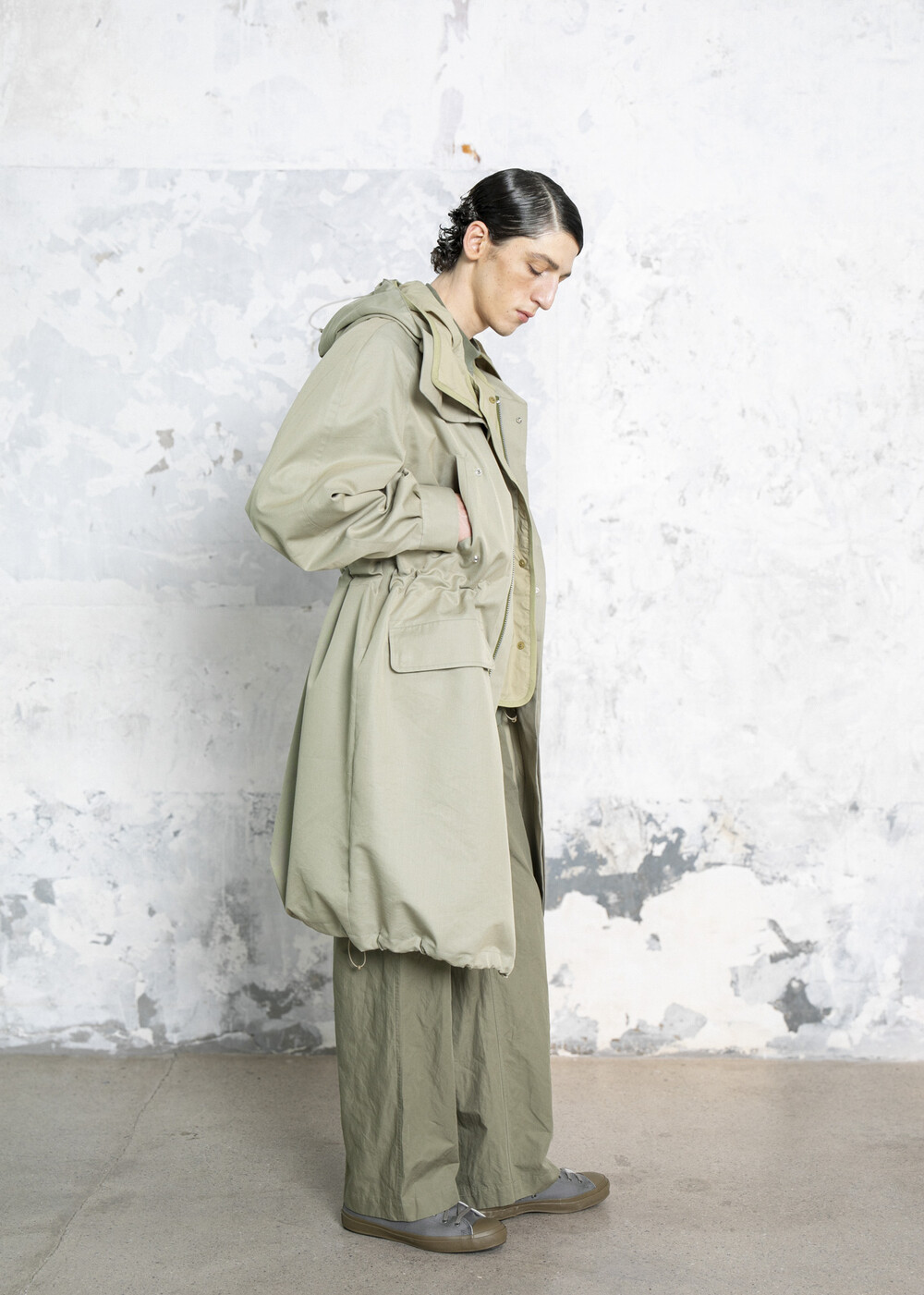 허리와 밑단은 스트링을 통해 색다른 실루엣을 만들 수 있는 것이 특징이며, 후드 디테일 및 커다란 포켓의 디테일은 밀리터리 스키 파카의 원형을 따르고 있습니다.
