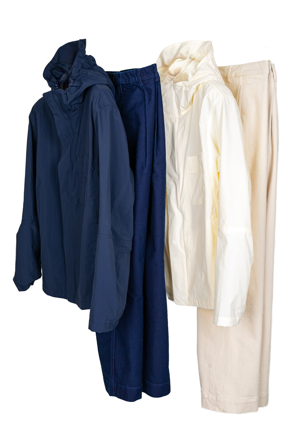 긴 기장과 여유로운 실루엣으로 밑단을 걷어 입어도 좋도록 안쪽에는 오바로크 봉제가 아닌 작업이 상당히 까다로운 쌈솔 봉제로 되어 있습니다.