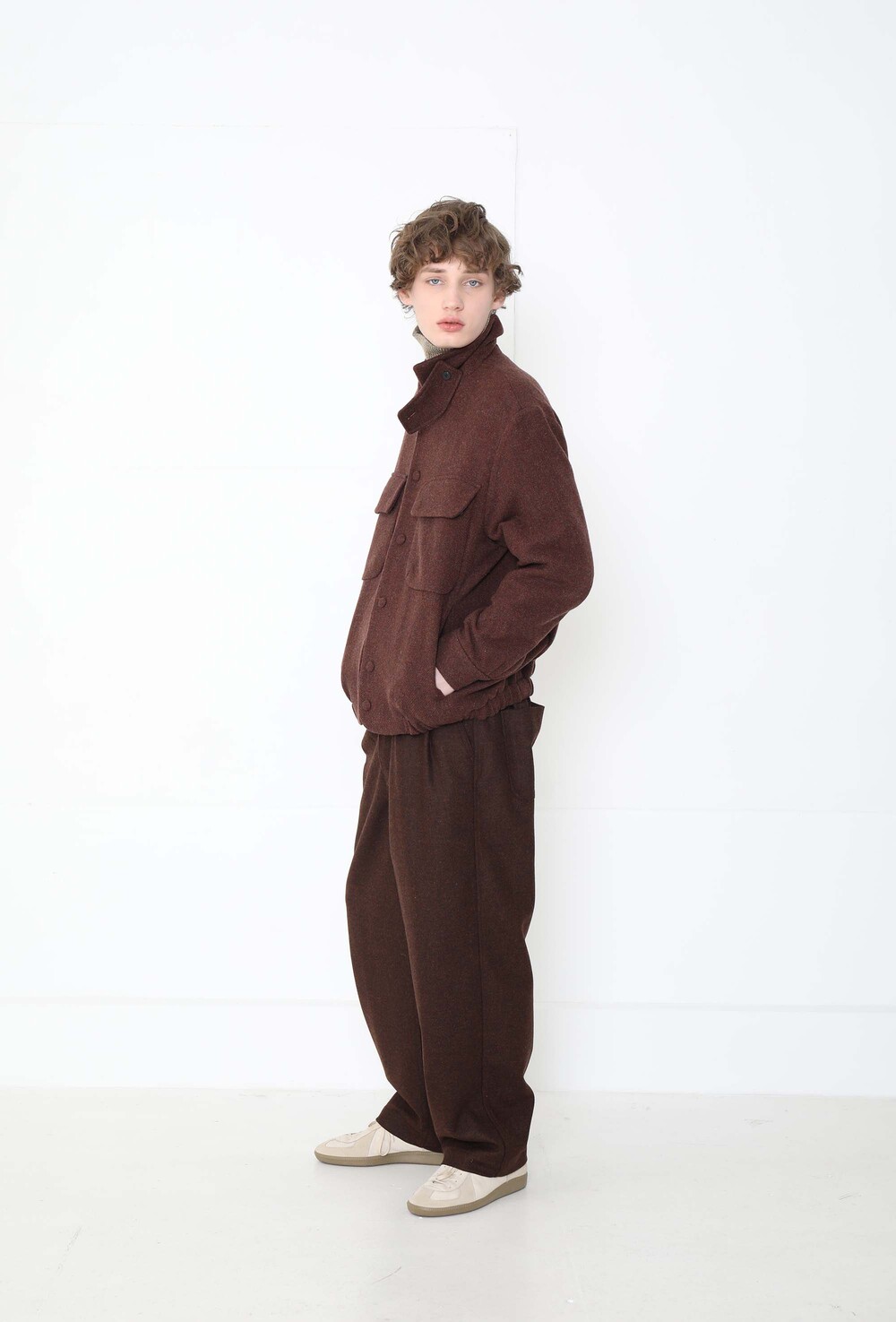 12번째 시즌에 처음 선보였던 네이비 컬러의 WOOL CPO JACKET 이 브라운 트위드 원단으로 선보입니다.