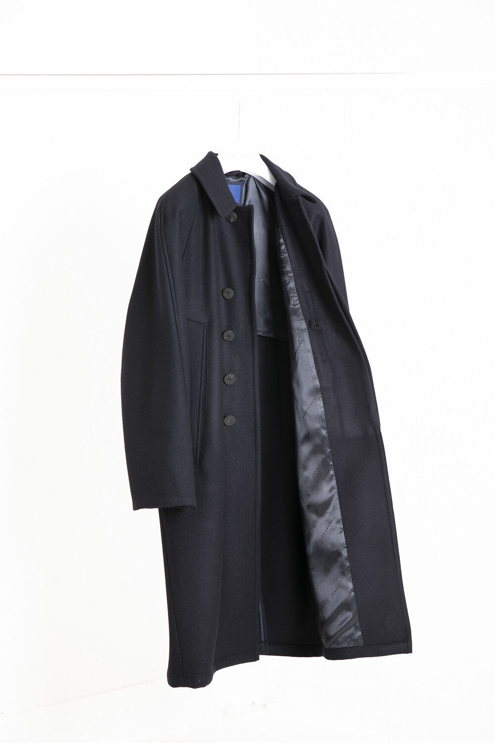 22OZ 의 부드럽고 두툼한 울로 제작되어 잘 맞게 떨어지는 실루엣의 긴 기장의 라글란 코트입니다.