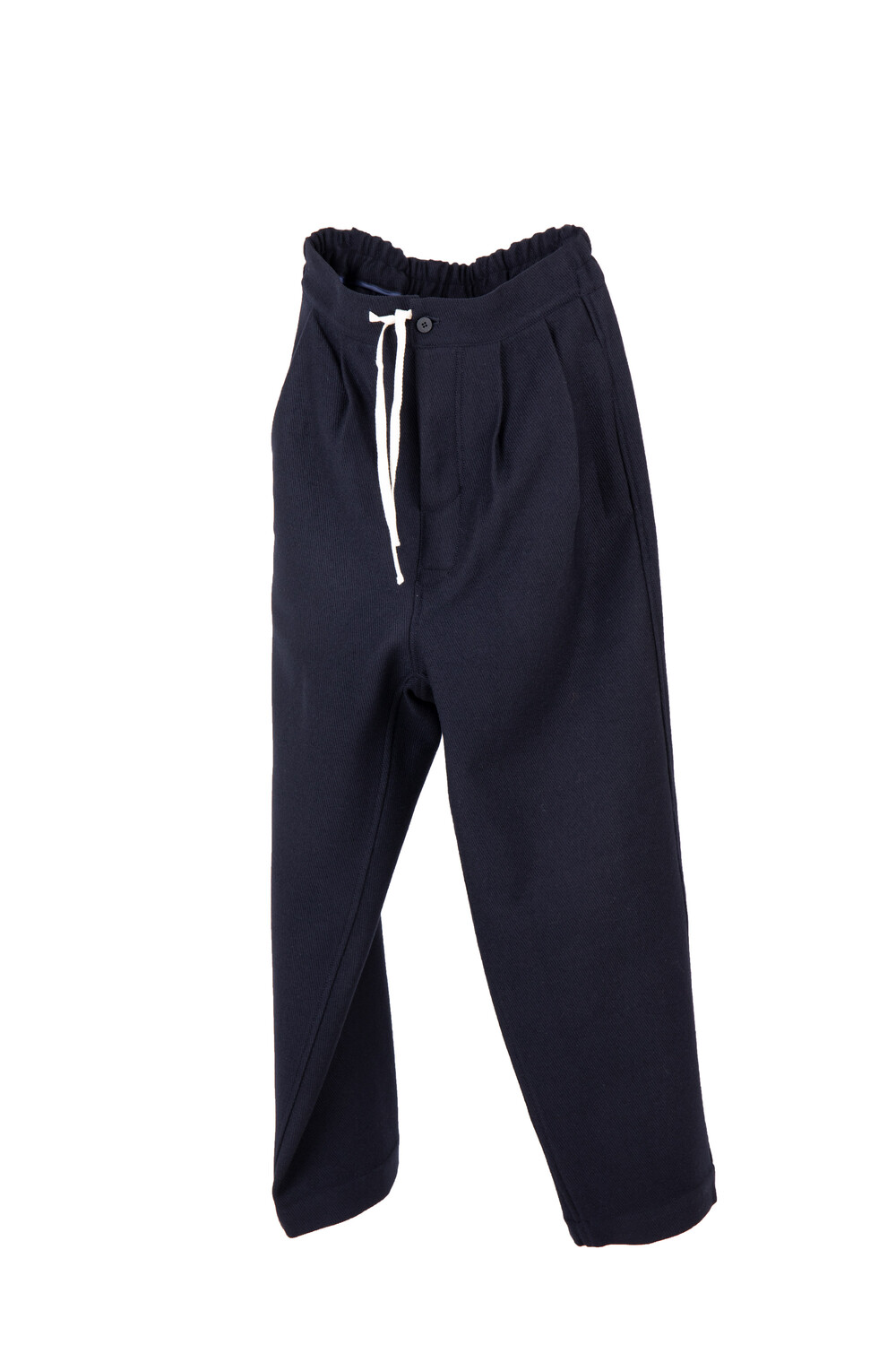 밴드로 되어있는 허리와 여유로운 실루엣으로 편하게 즐기기 좋은 WOOL TWILL TUCKED PANTS 입니다.